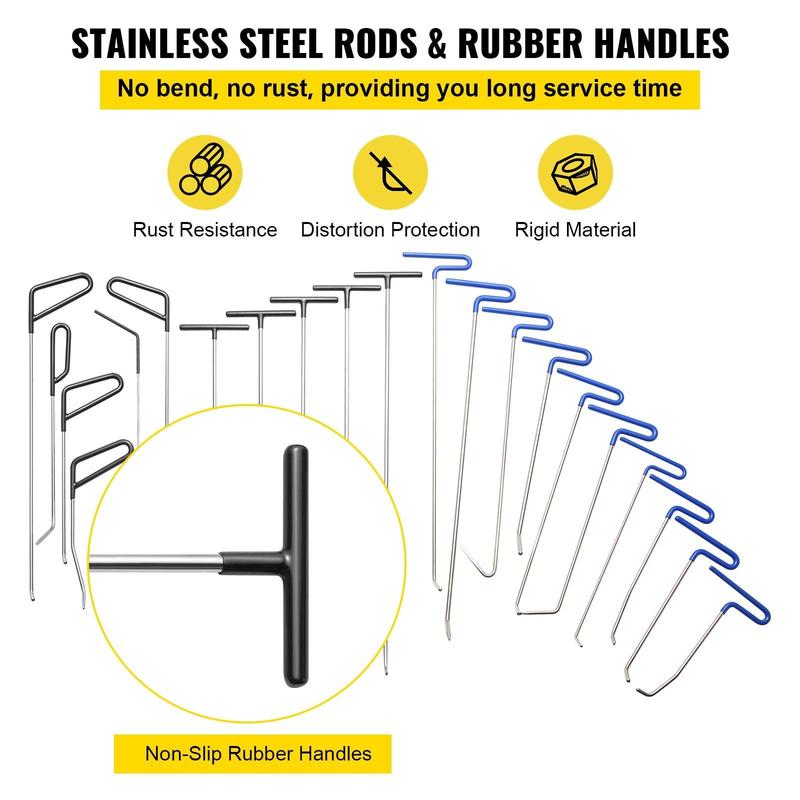 ·Durable Stainless Steel: All the rods are made of stainless steel, which is not easy to bent and rust, providing you with long-term service and a great help. The handle part of the dent kit is made of rubber, and the comfortable handle is non-slip.