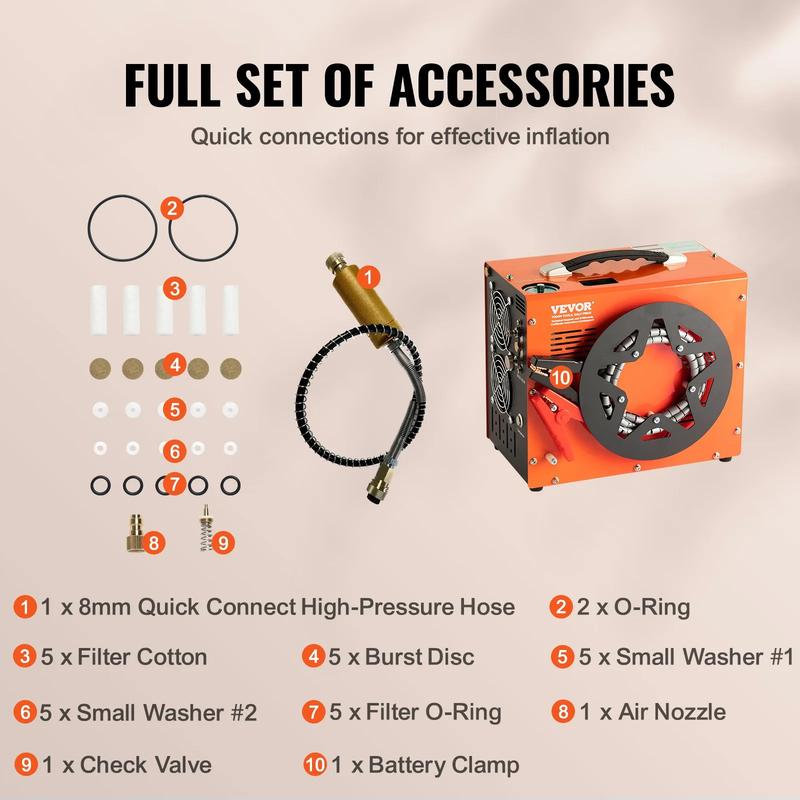·Comprehensive All-in-One Package: Our PCP air rifle compressor is built-in oil/water separator, and provides 8mm quick-connect high-pressure hose, battery clamp, and a set of accessory pack for easy connections and replacements. Get a complete solution for your diverse inflation needs!
