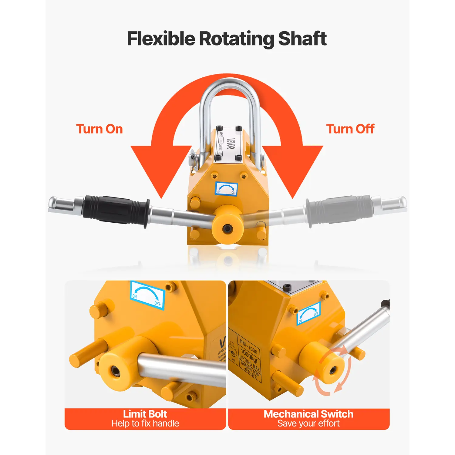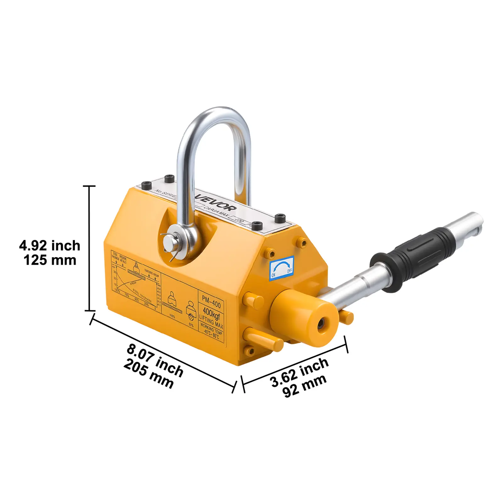 ·The permanent magnetic lifter delivers up to 880 lbs / 400 kg of magnetic force with a 2.0 security factor. It features a high-grade N42 neodymium magnet for stable, powerful lifting performance.