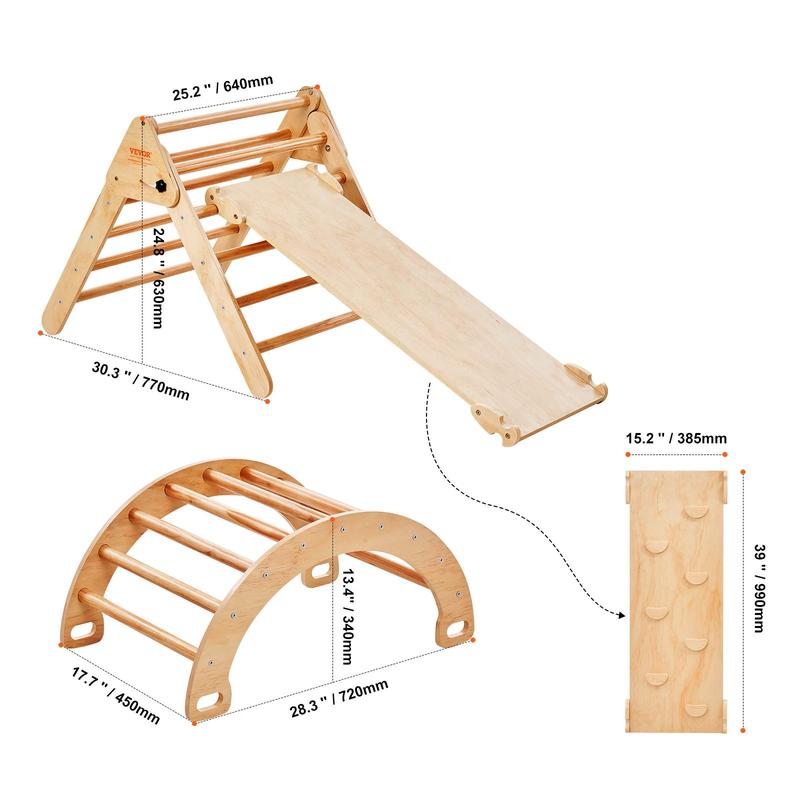 5. VEVOR Pikler Triangle Set, 5 in 1 Toddler Climbing Toys Indoor Playground, Ramp, and Arch, Montessori Climbing Set with Triangle, Large Size Wooden Climbing Gym for Toddlers 1-3 Years, Wood Color