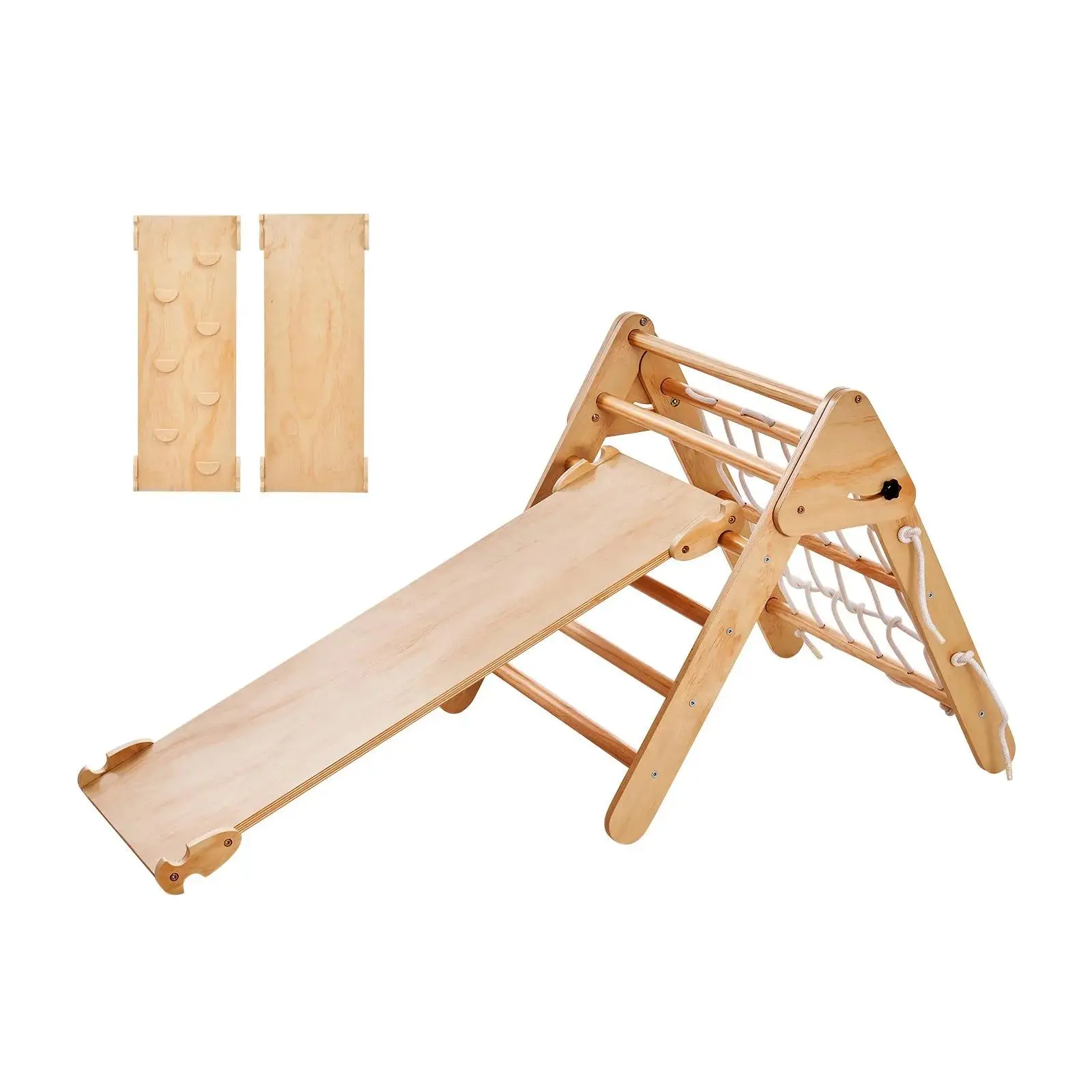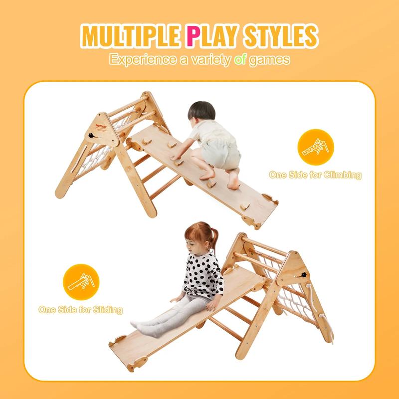 Explore the joy of climbing with the VEVOR Pikler Triangle Set! This 4-in-1 set includes a large wooden climbing gym, perfect for toddlers aged 1-3. It features a triangle and ramp design, ideal for indoor play. The set is crafted in wood color, offering a natural and safe environment for young explorers. Encourage your child's development with this Montessori-inspired playset. 🏠