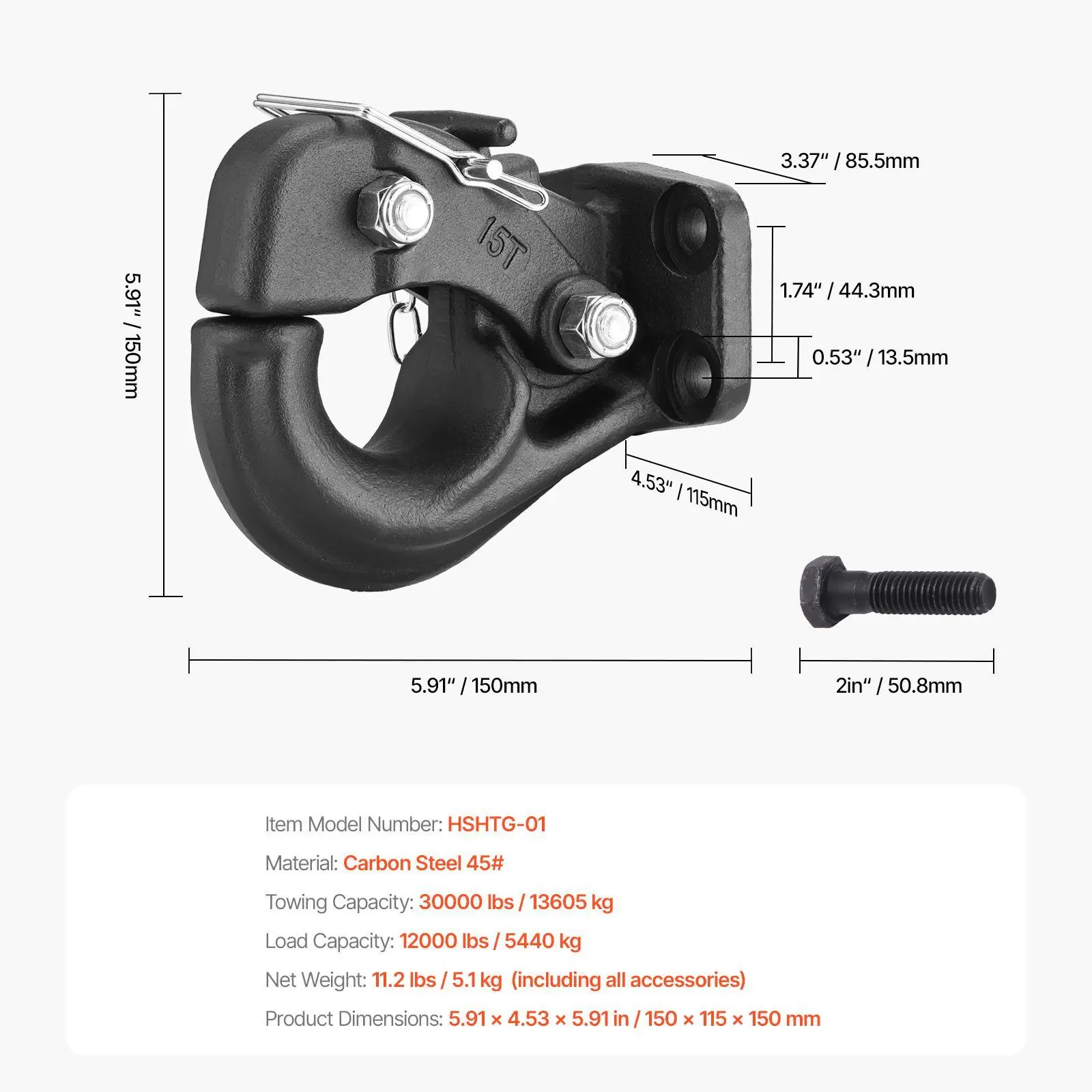• Premium Durability: Forged from 45# high-strength steel, our pintle hook features a powder-coated surface that enhances rust and wear resistance. The heat-treated hook further extends its lifespan.