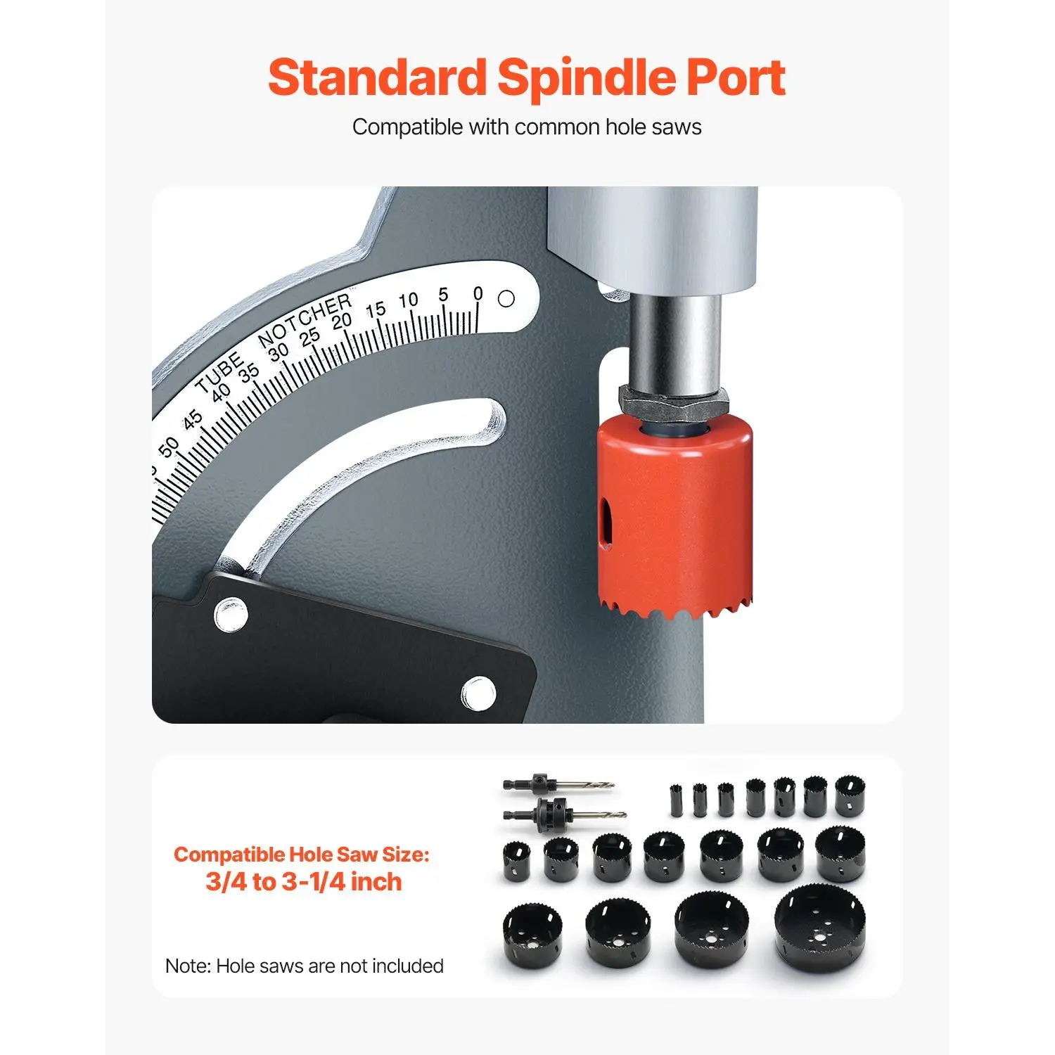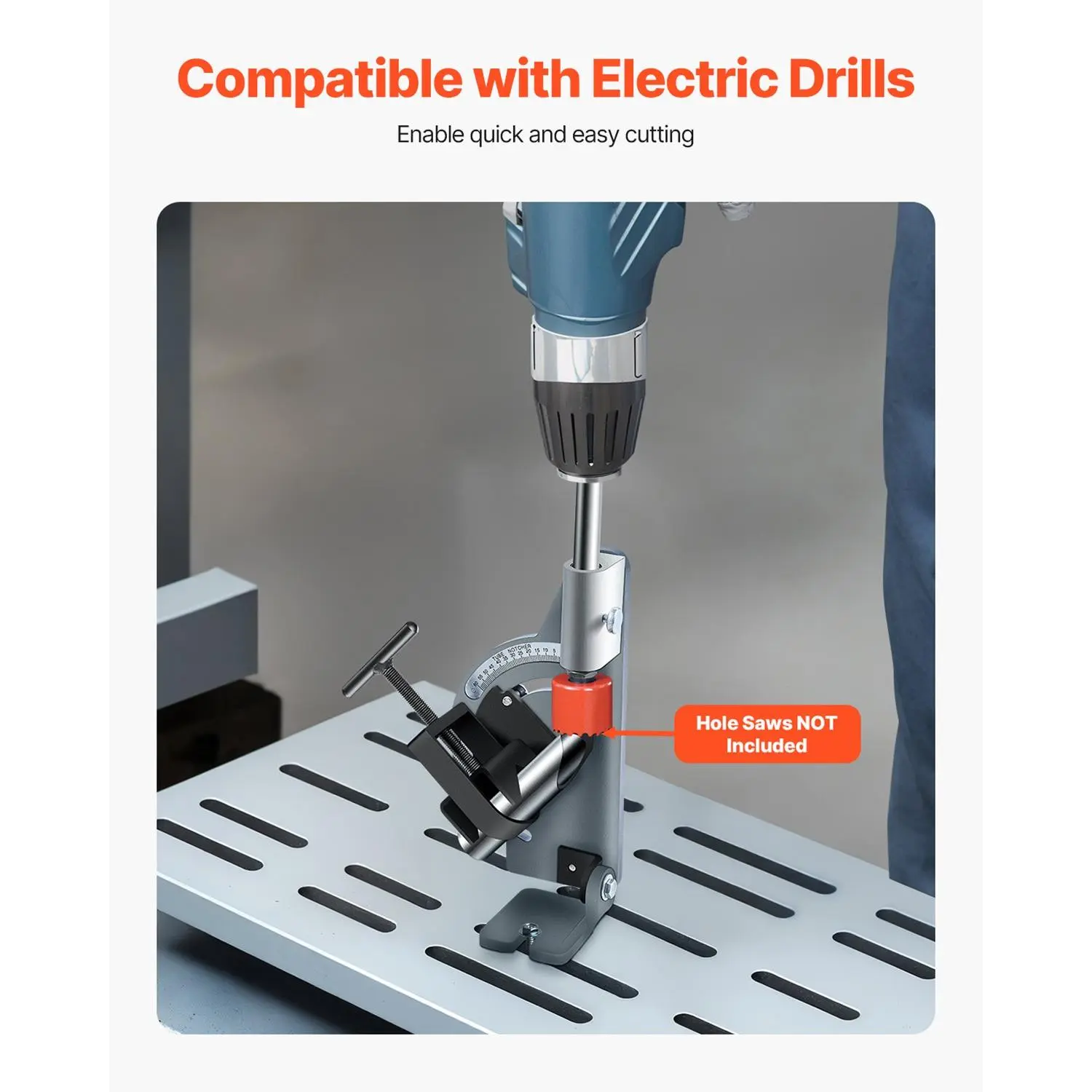 Efficient Pipe Notching: Suitable for 0.5 inch to 2 inch round pipes, this pipe notcher minimizes the need for frequent tool changes, allowing you to handle various pipe diameters with ease and efficiency.Flexible to Adjust: With a 0-60° adjustable angle, this tubing notcher easily adapts to different notching tasks.The clear angle scale allows for quick, customizable adjustments, ensuring accurate results with minimal effort.Wide Versatility: This pipe tube notcher is compatible with common hole saws ranging from 3/4 to 3-1/4 inch.It can also be used with drill press, milling cutter, and round cutter, offering versatile options for various notching needs.(Please note that hole saws are not included.)Built to Last: Crafted from robust steel plate, this tube notcher offers exceptional durability and wear resistance.Its reinforced base ensures stability, providing steady support for precision work.Versatile Notching Tool: This pipe notcher works seamlessly with various materials, including metal, PVC, wood, and plywood.Whether you’re crafting metal frames or handling plumbing and metalworking projects, it’s your reliable all-in-one solution.VEVOR Pipe Notcher, Tubing Notcher for 1/2 to 2-inch Pipes, Pipe & Tube Notcher with 0 to 60° Adjustable Angle for Metal, PVC, Wood Pipes, Ideal for Repair Shops, Home Projects, Metalworking
