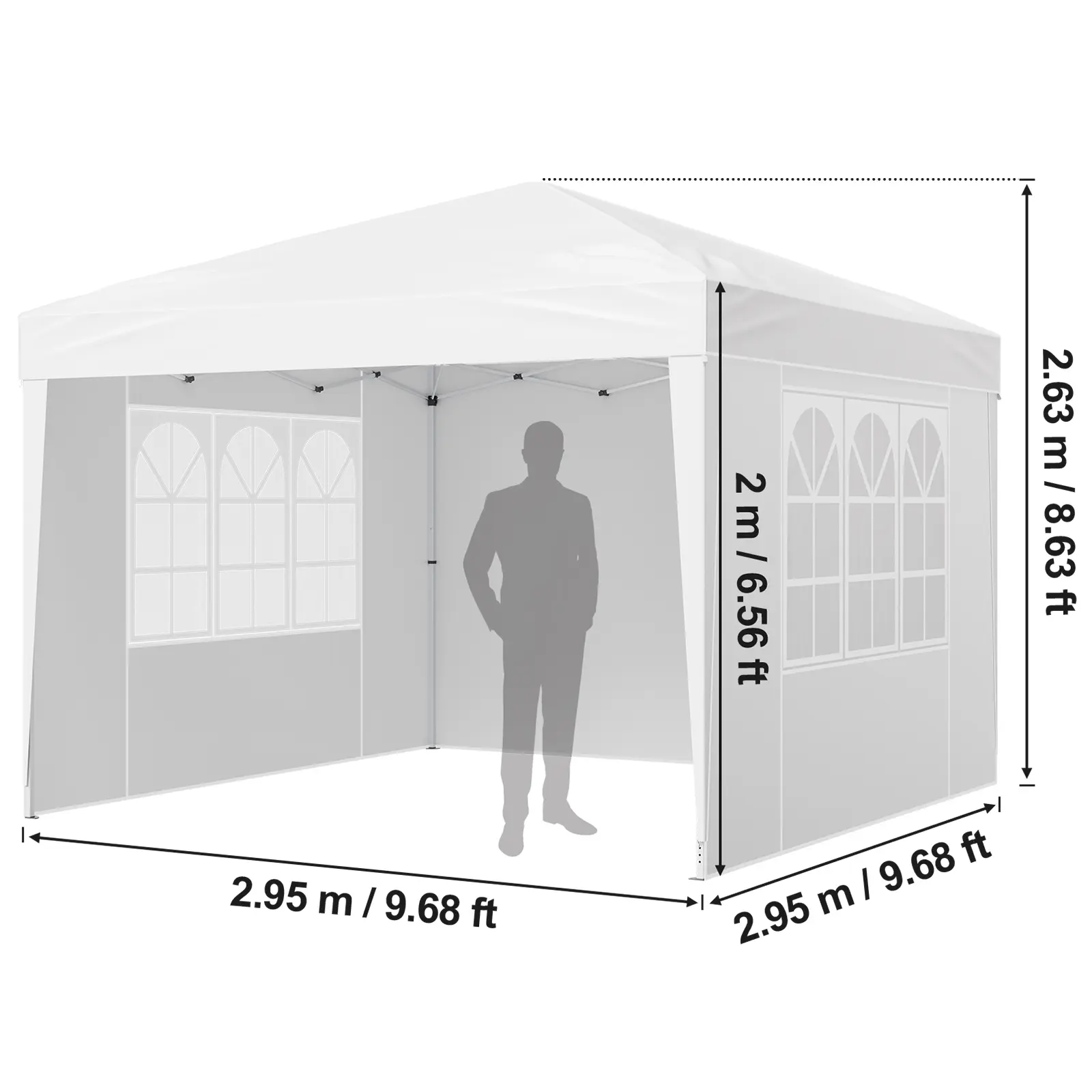 • Exceptional Protection: Crafted from 210D silver-coated Oxford fabric, this pop-up instant gazebo offers UPF 50+ protection and water resistance. Plus, the sidewalls with windows add extra coverage, ensuring privacy while promoting good ventilation
