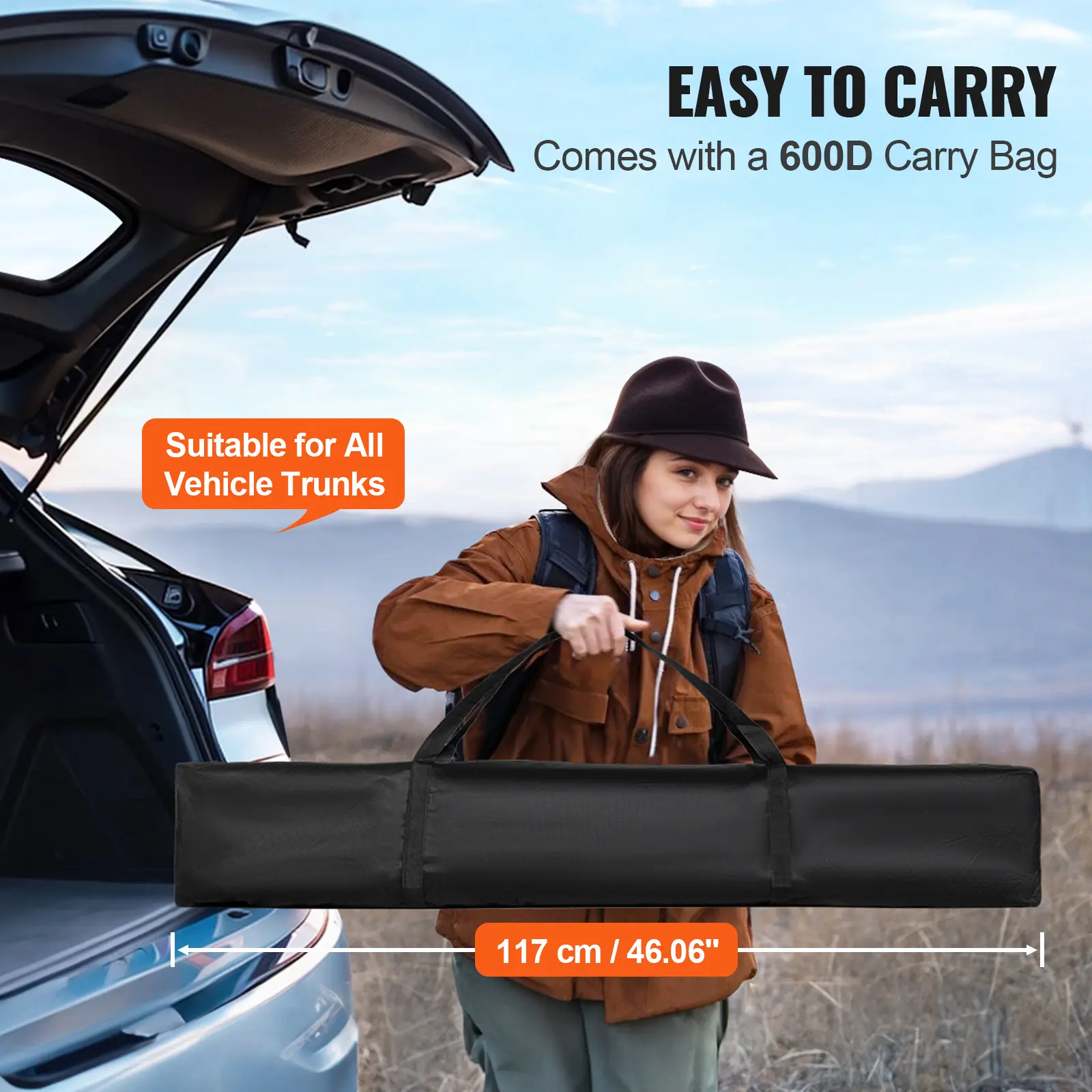• Easy Portability: This pop-up outdoor shelter tent comes with a durable 600D storage bag, making it easy to pack, carry, and fit in your trunk—perfect for on-the-go outdoor adventures