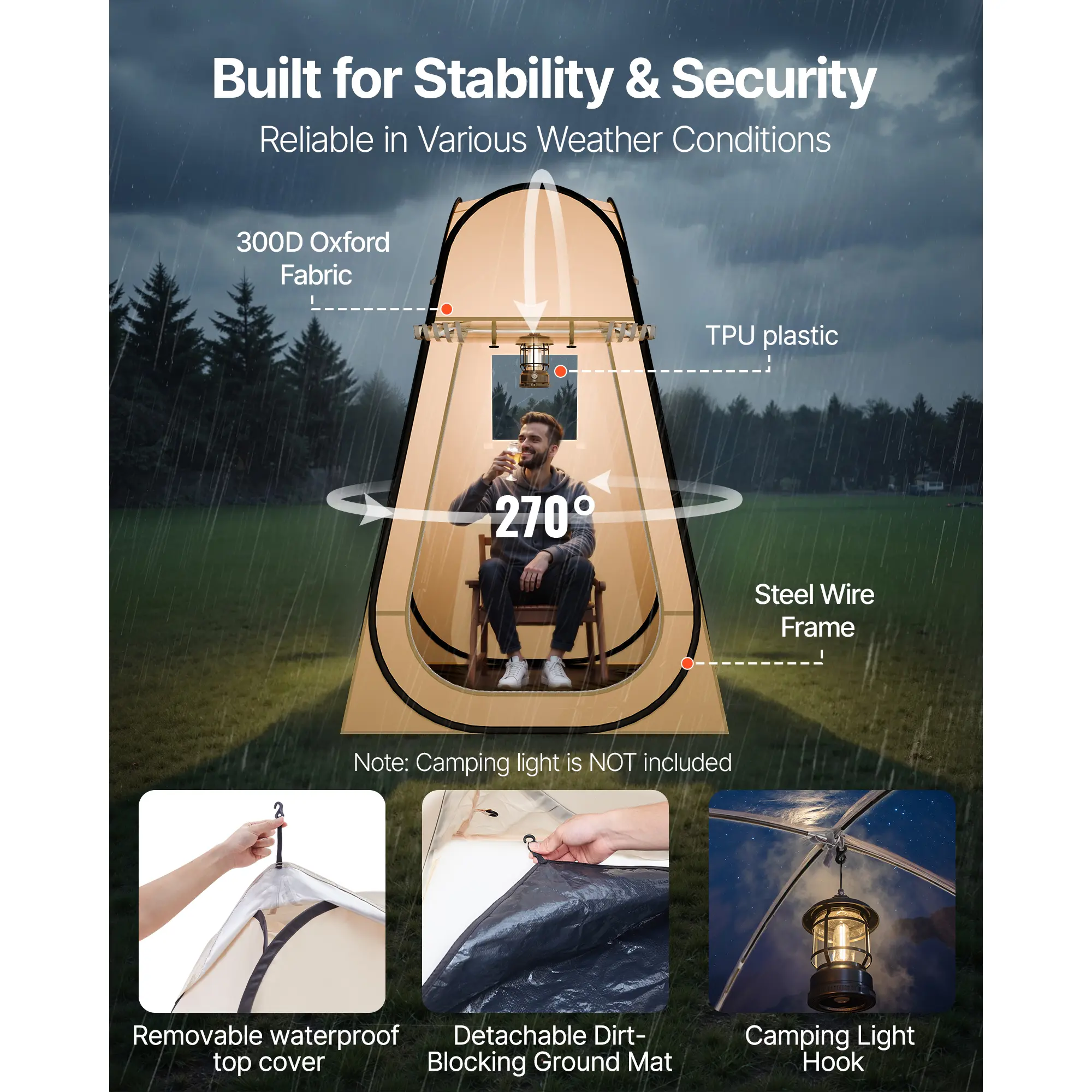• Sturdy & Durable: Constructed with high-strength TPU plastic, 210D Oxford fabric, and steel wireframe for tear resistance and UV protection, the pop up weather proof pod ensures long-lasting durability.
