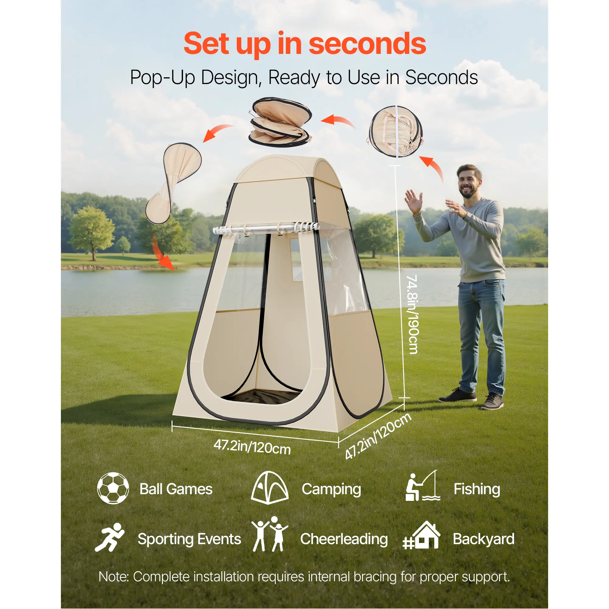• Quick Pop-Up in Seconds: The clear sports tent features pop-up design that allows for easy setup in under a minute—no complex steps required, making outdoor camping more convenient. Note: This pop up tent is suitable for cool autumn and winter use, not recommended for hot weather.