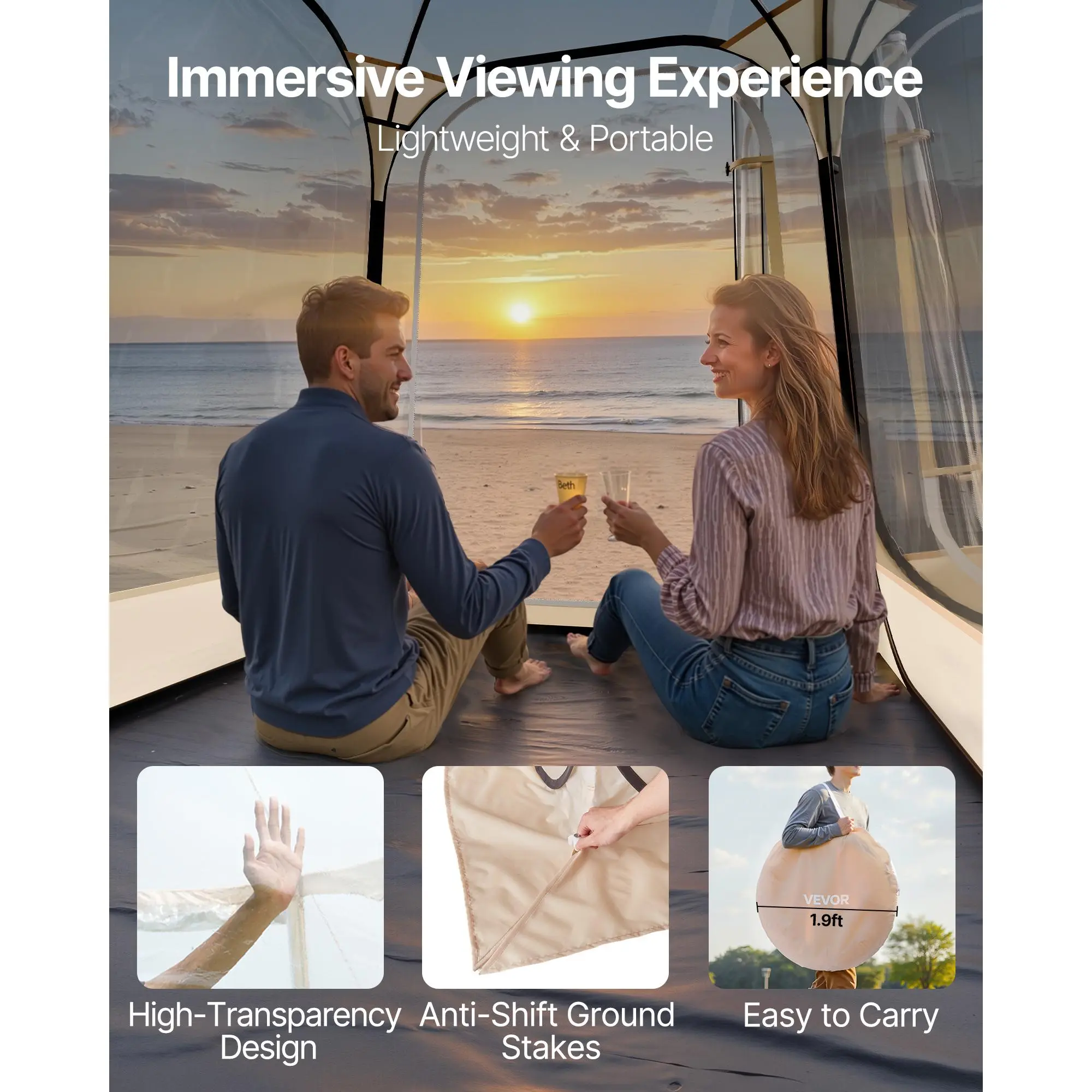 • Fine Craftsmanship: This pop up bubble tent features heat-sealed seams and double-stitching, with upgraded SBS zippers to enhance waterproofing and durability, improving overall longevity.