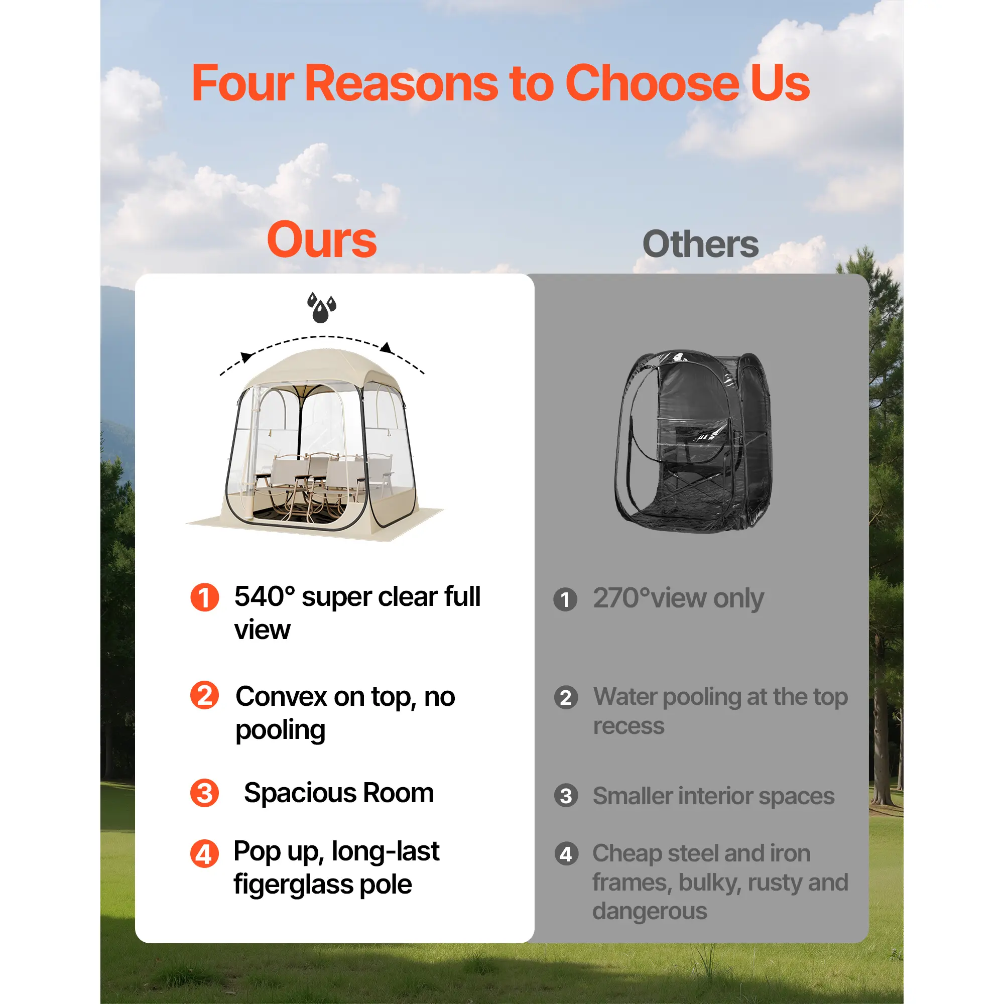 • Pop-up Transparent Design: The clear sports tent features easy-to-use pop-up design allows for quick setup in just seconds. Our clear weather proof pod offers a bright and airy outdoor space to enjoy in no time. Note: This pop up tent is suitable for cool autumn and winter use, not recommended for hot weather.