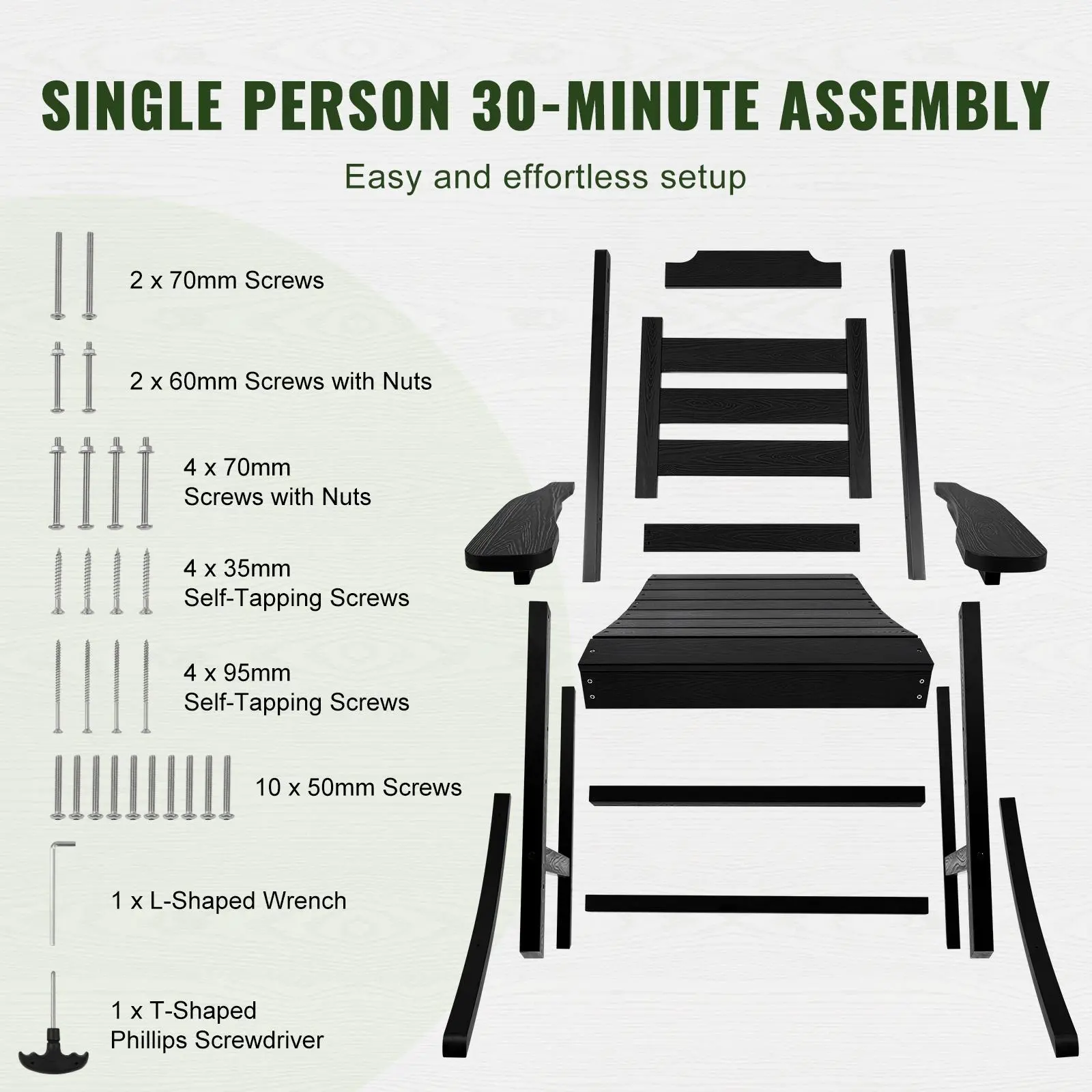 VEVOR Porch Rocker,  , HIPS Outdoor Rocking Chair, High Back Patio Rocking Chair with Smooth Armrests, Supports up to 400 lbs, for Garden, Balcony, Porch, Black