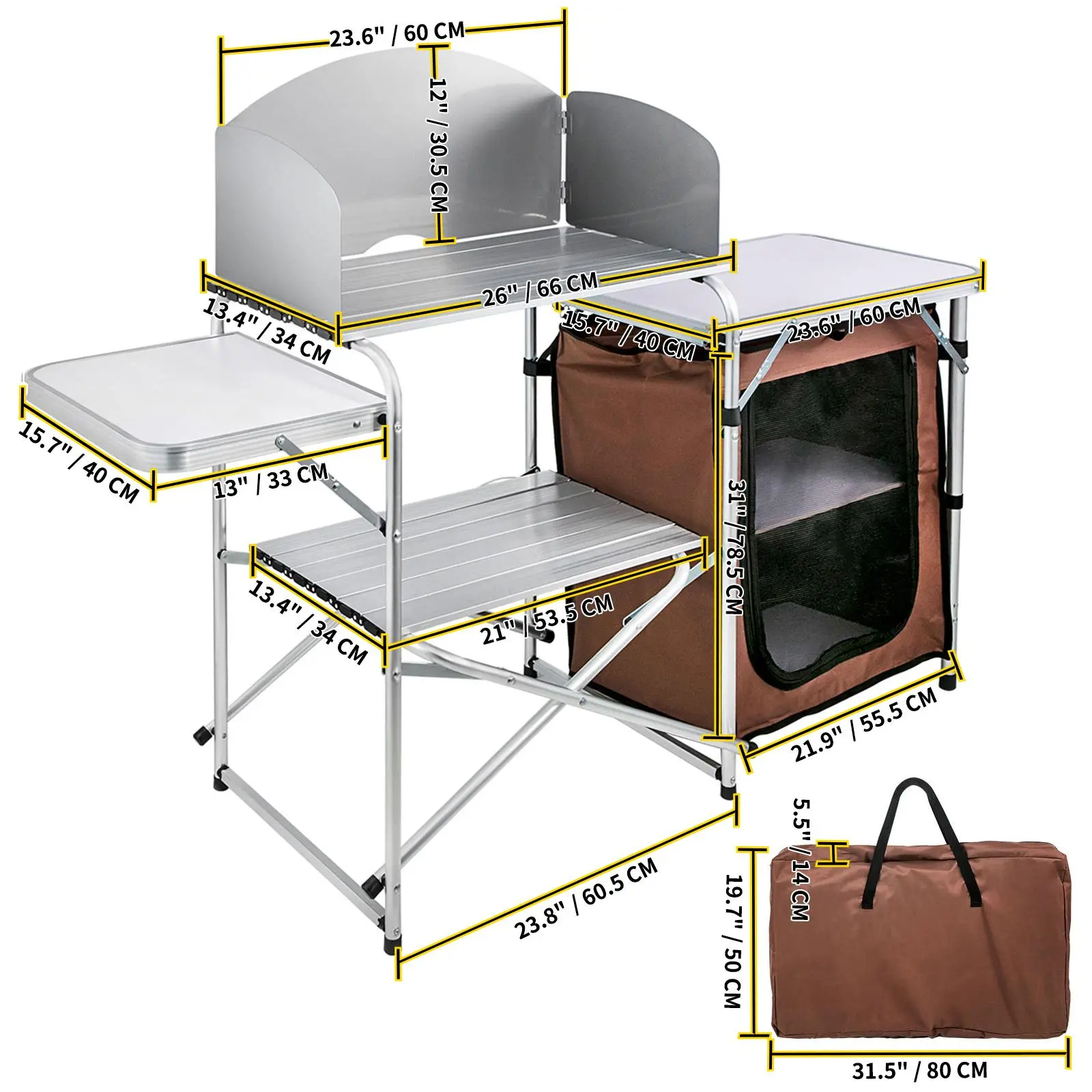 • Portable & Lightweight: This kitchen table can be taken outdoors with our carry bag and stored effortlessly, thanks to its foldable and lightweight design. And the detachable aluminum top and rack make the table set up or break down completed in less than a minute. Super easy to carry and operate.