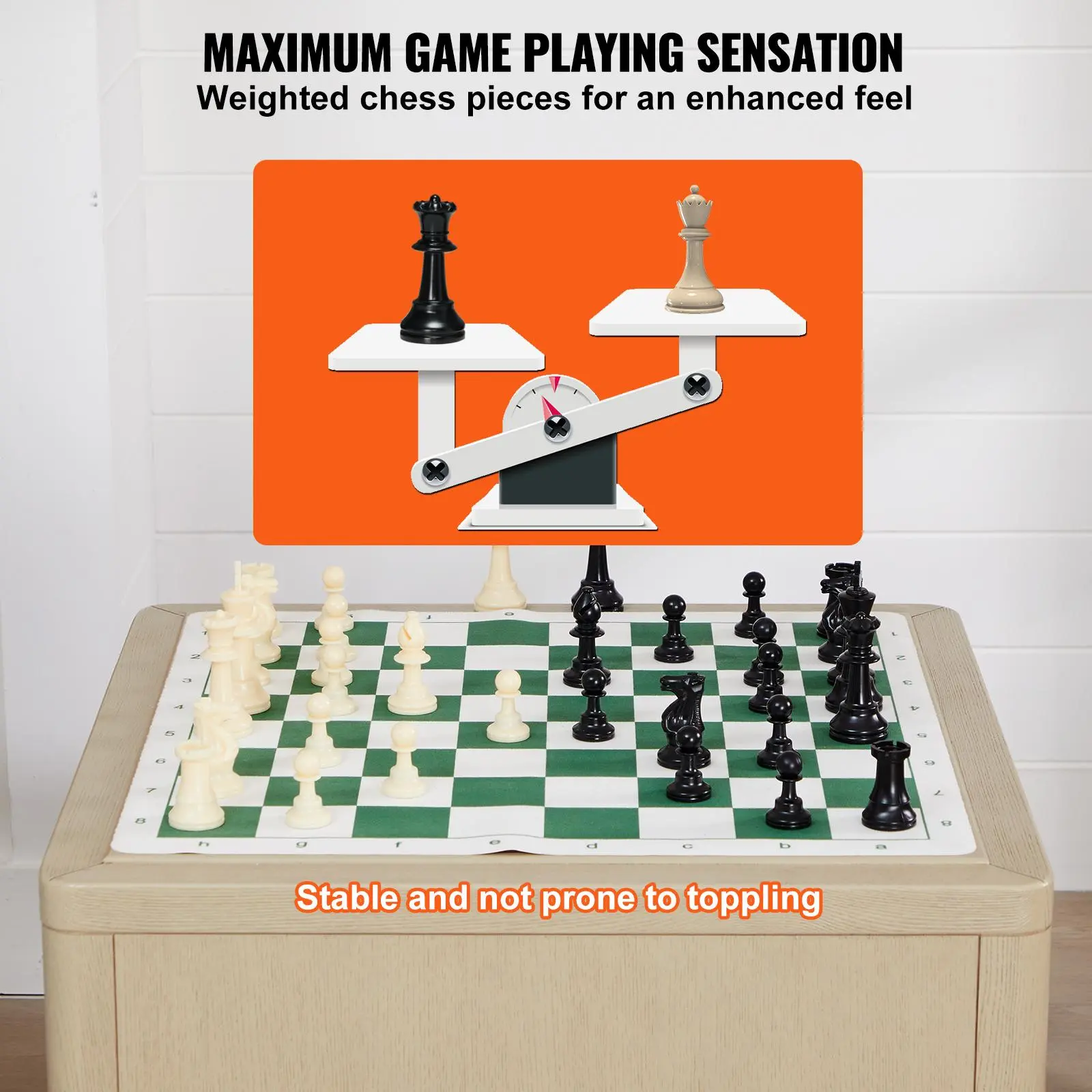 • Weighted Chess Pieces: The precision-made chess pieces have built-in iron blocks for added weight, It also equipped with non-slip felt bottoms, stable and durable, ensuring each of your moves is steady and composed.