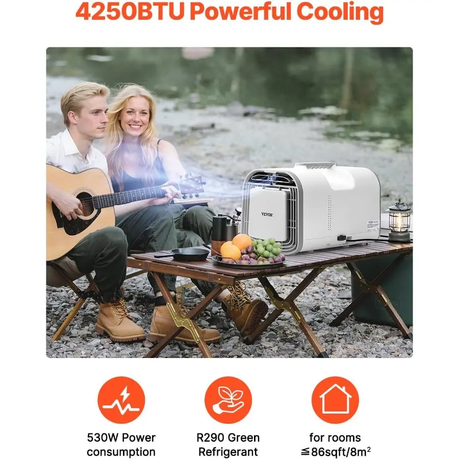 VEVOR Portable Air Conditioner, 4250 BTU 3 - Speed Air Conditioning Unit with 24H Timer, Air Portable AC Compatible with AC/DC 24V, for Outdoor Tent Camping, RVs or Home Use, White