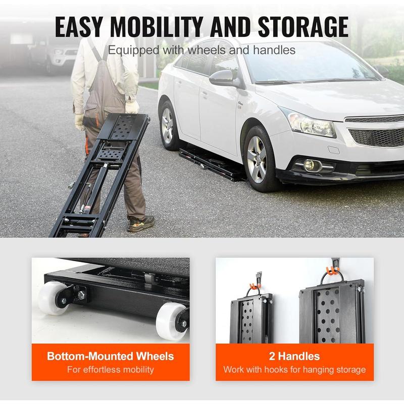 Equipped with mechanical locks, the vehicle lift will be locked when you reach your desired height.And non-slip rubber surfaces, ensuring secure lifts without slippage.
