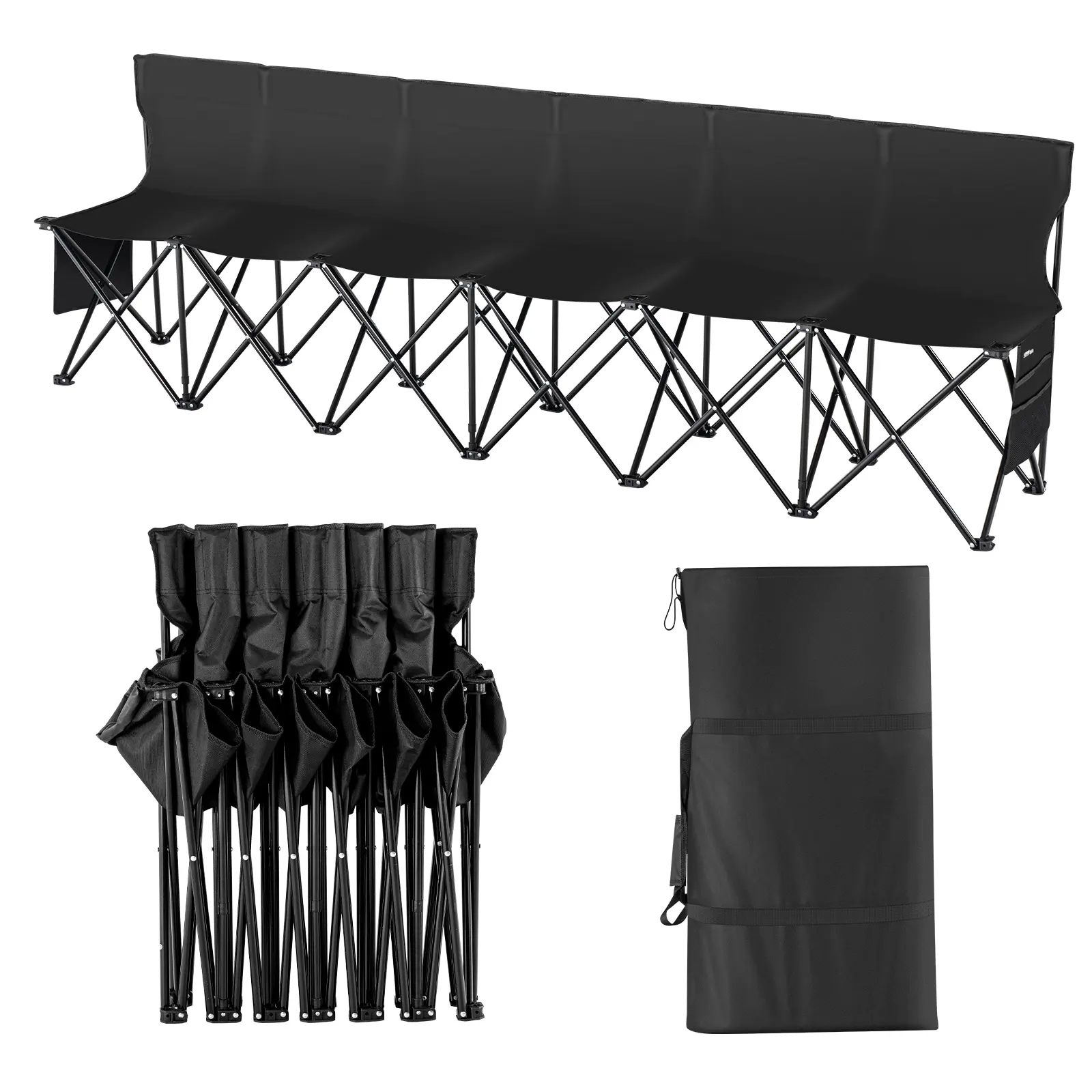 • Humanized Design: The portable camping folding bench chair has side pockets on both sides, perfect for placing coach boards, first aid kits, phones, keys, and other items. The humanized design offers more convenience.