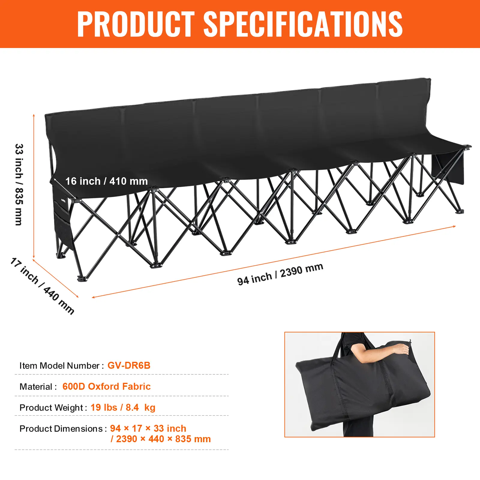 • Comfortable Seating: This 94x17x33 inch/2390x440x835 mm portable 6-person folding bench is highly portable and lightweight. The foldable sideline bench comes with a backrest for comfortable seating. No assembly required, just open the package and use.