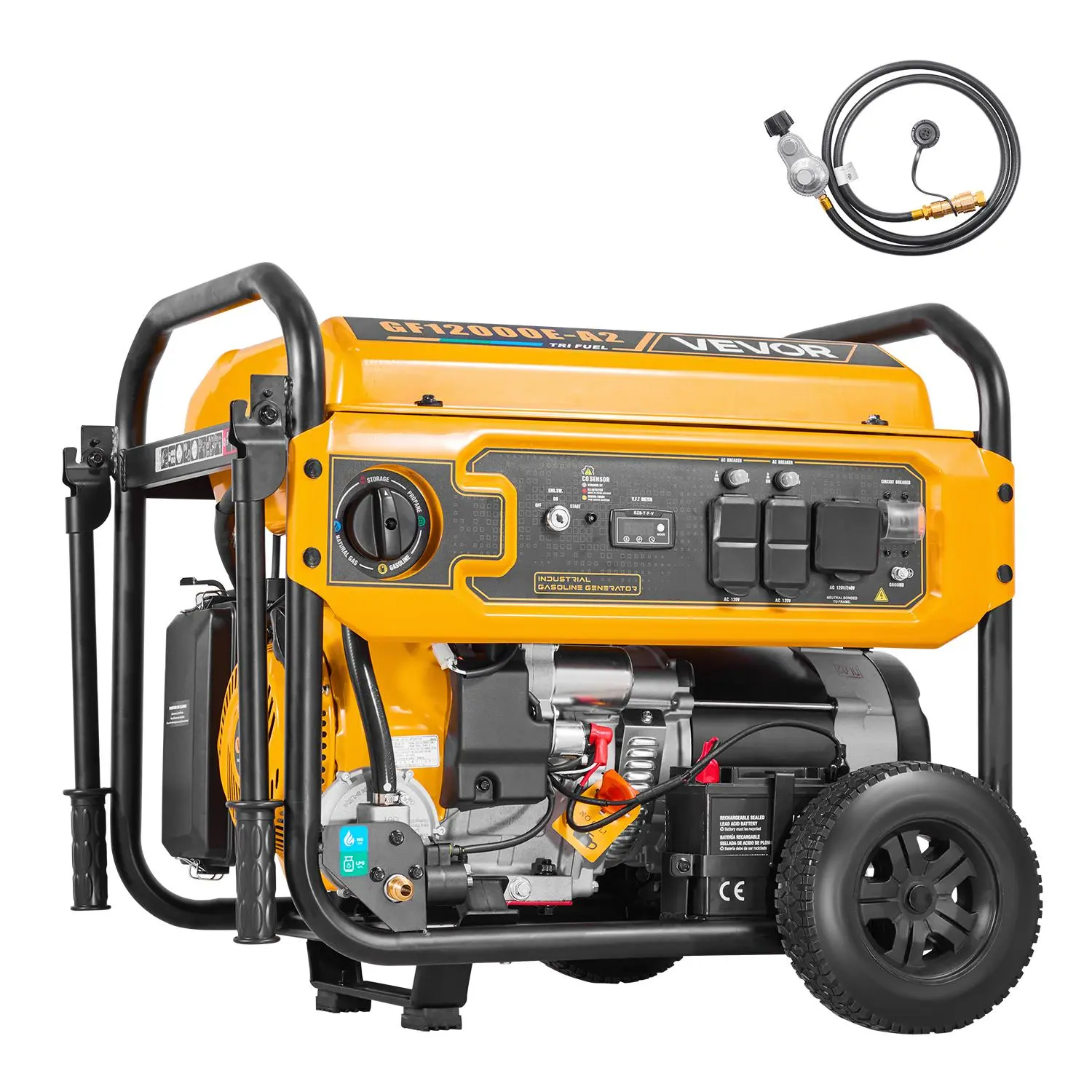 • Triple Fuel Engine: Power your home with this triple-fuel home backup portable generator. Gasoline delivers 9000W running/13500W peak, LPG 8100W/12000W peak, and natural gas 7200W/11000W peak. AC120V/240V output with a 500cc engine ensures steady, portable electricity for backup or outdoor use