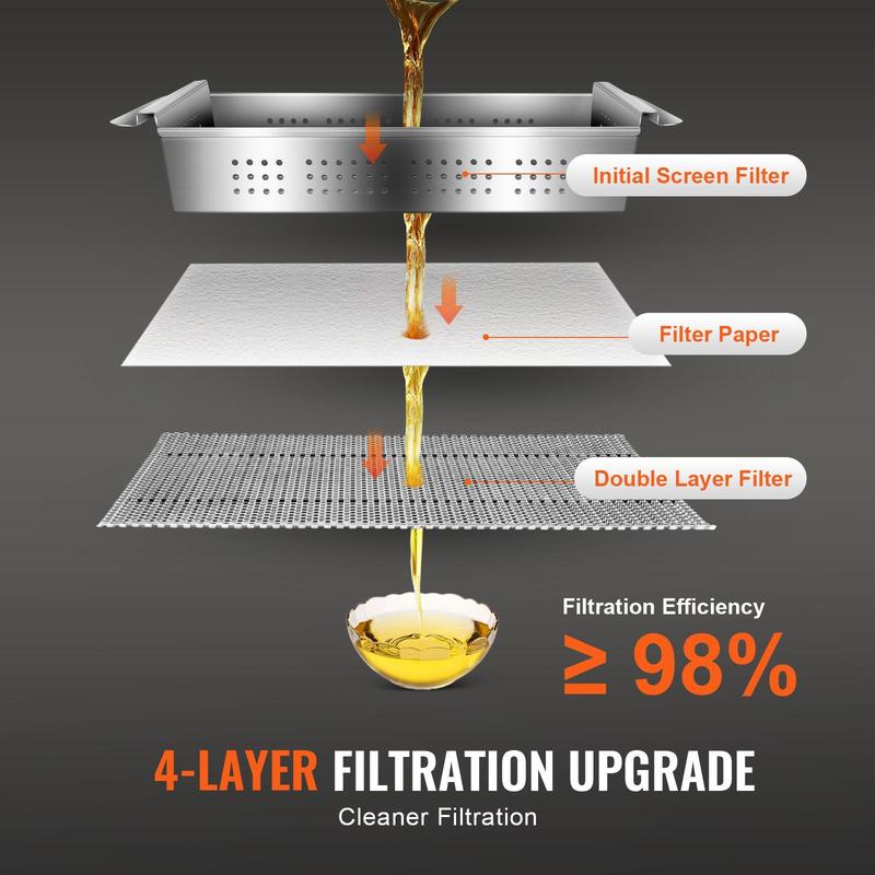 • Four-Layer Efficient Filtration: Our fryer filter machine comes with an initial filter screen and upgraded double-layer oil filter screen and is paired with filter paper and oil-absorbing powder, further enhancing the oil filtering effect and speed. Plus, we throw in 7 sheets of filter paper, which can be purchased separately.