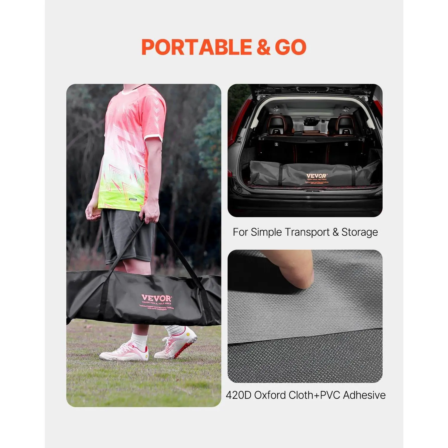 • Portable & Convenient: Designed for on-the-go fun, our portable soccer goal comes with a convenient carrying bag made from 420D oxford cloth and PVC adhesive. This bag simplifies transportation and storage, allowing you to take the game wherever you desire effortlessly.