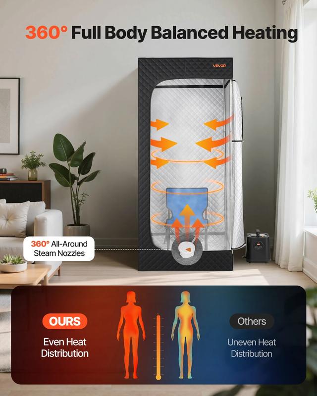 This portable steam sauna acts like a mobile therapy center. It features a fully enclosed design and a 360° steam nozzle, delivering balanced, all-around warmth to your entire body. Perfect for a relaxing spa experience at home.