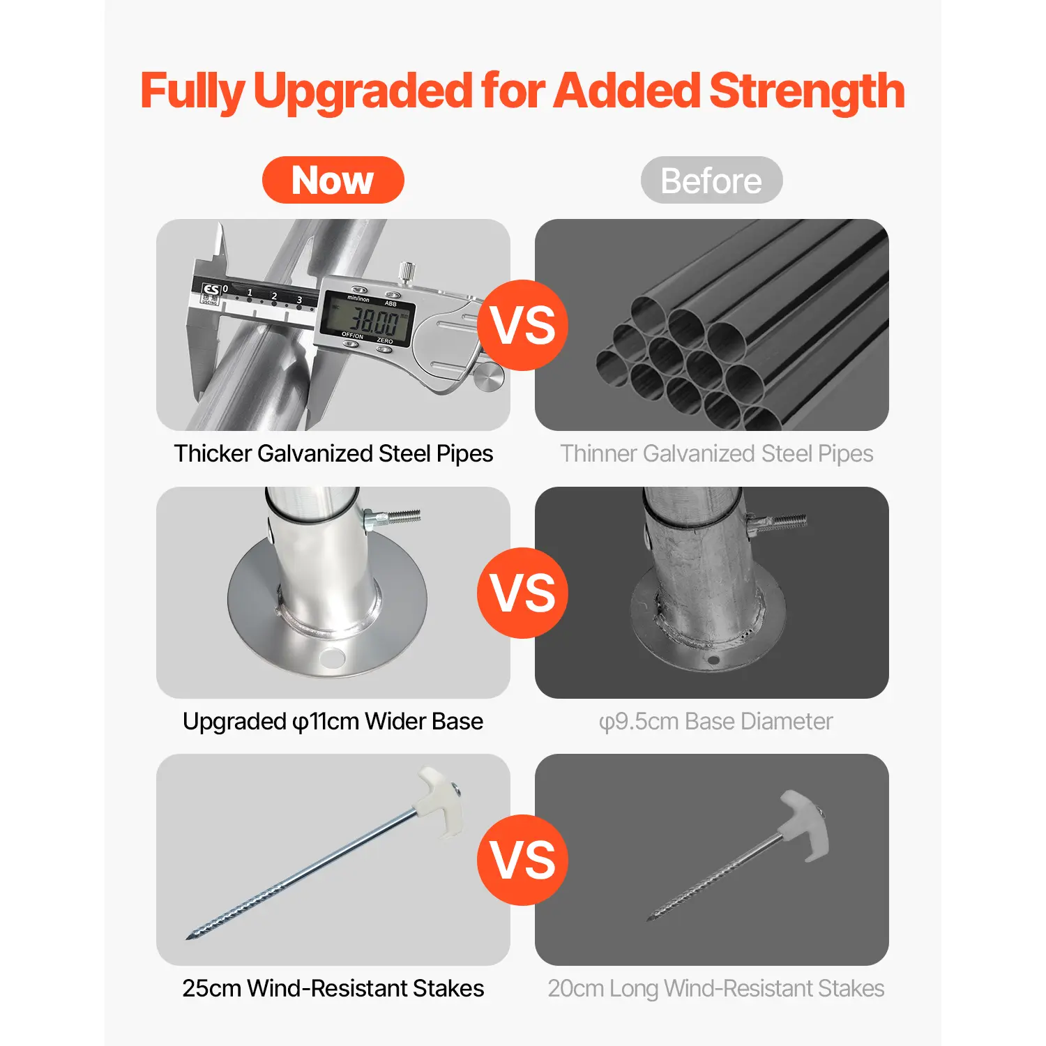 • Heavy-Duty Metal Frame: This large 10x10 ft portable storage shed is built with galvanized steel pipes, with a pipe diameter of 38mm and wall thickness up to 0.7mm. This makes it resistant to cracking, peeling, rusting, and corrosion, ensuring stability and security even in harsh weather conditions.