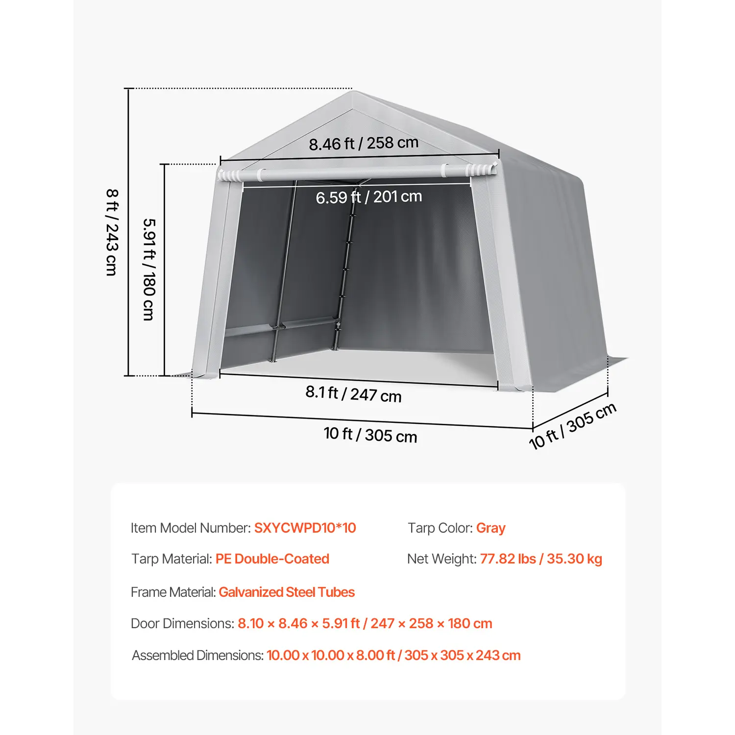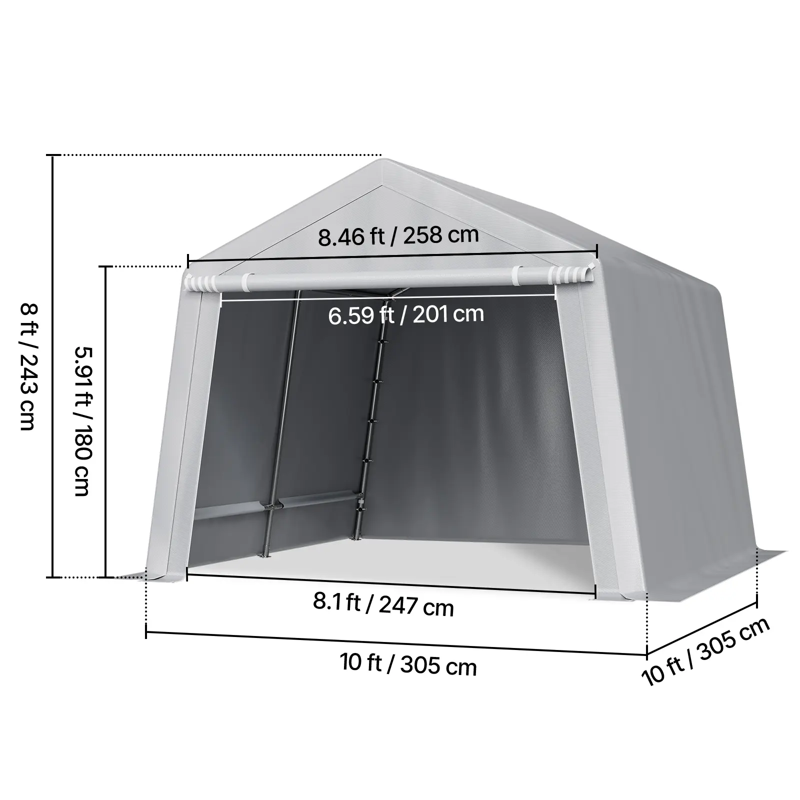 • PE Double-Sided Coated Canopy: The outdoor storage shelter comes with a gray cover that is made from double-layer coated PE material, offering tear resistance, fade resistance, rain and snow protection, wind and dust resistance, and UV protection. The bottom extends 5.91 inches (15 cm) to the ground, improving stability and protecting your equipment from harsh weather.