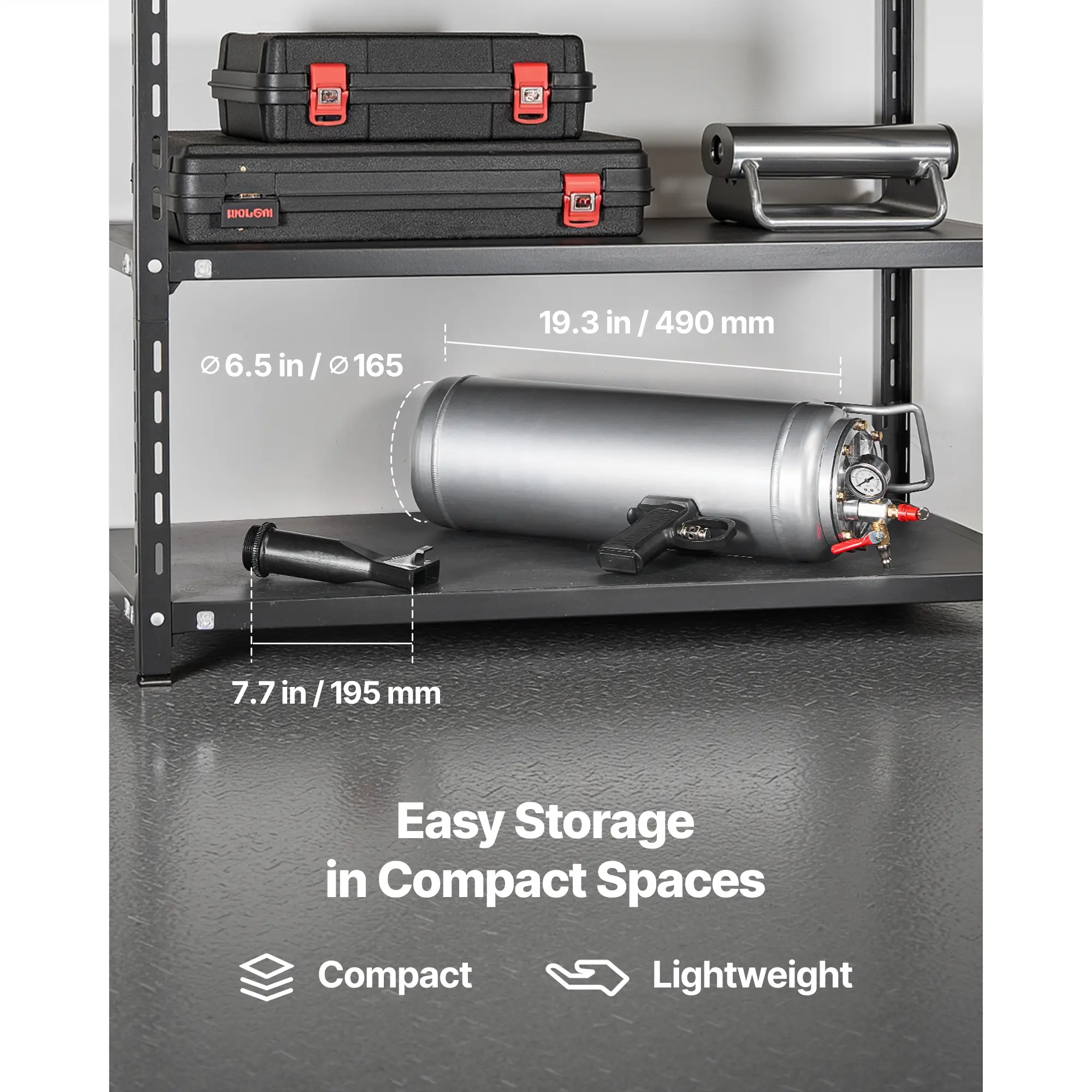 • Compatible with Multiple Types: 2.6 Gal / 10 L cylinder, fits tubeless tires 12–22.5 in / 305–572 mm. Operating pressure: 87–116 PSI / 0.6–0.8 MPa. Suitable for cars, motorcycles, SUVs, pickups, lawn tractors, and travel trailers