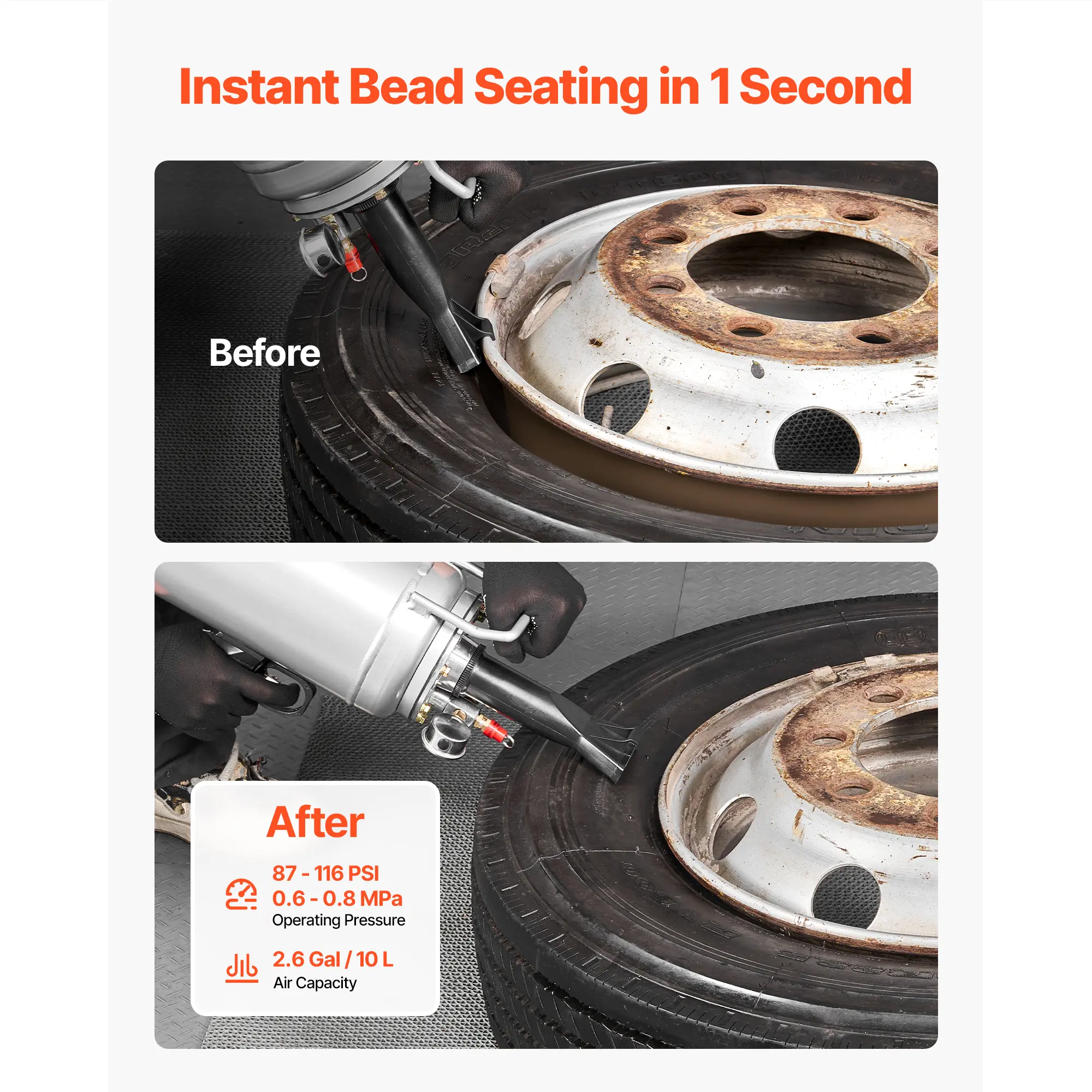 • Instant Inflation: This tire bead seater boosts tire-changing efficiency, saving both time and effort. By instantly releasing high-pressure air, it forces the tire bead back into the rim’s groove, completing the bead seating process