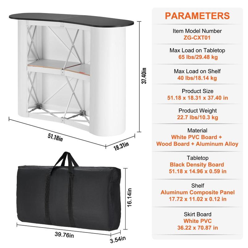 • Fold It Up, Set It Up: Our display exhibition counter is like magic – it folds up neatly for space-saving storage when not in use. It can also unfold in a snap for quick setup, simplifying the assembly process. Perfect for those on-the-go exhibitions!