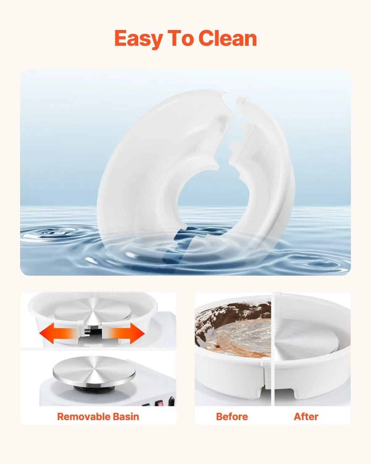 ·Premium Quality: 11 in / 28 cm large aluminum alloy turntable allows users to draw large pieces quickly. Durable ABS water basin attached to stop mud from splashing and is detachable for easy cleaning. Compact structure with humanized design and excellent details provide users with a more enjoyable experience. Enjoy pottery and sculpting from the comfort of your home