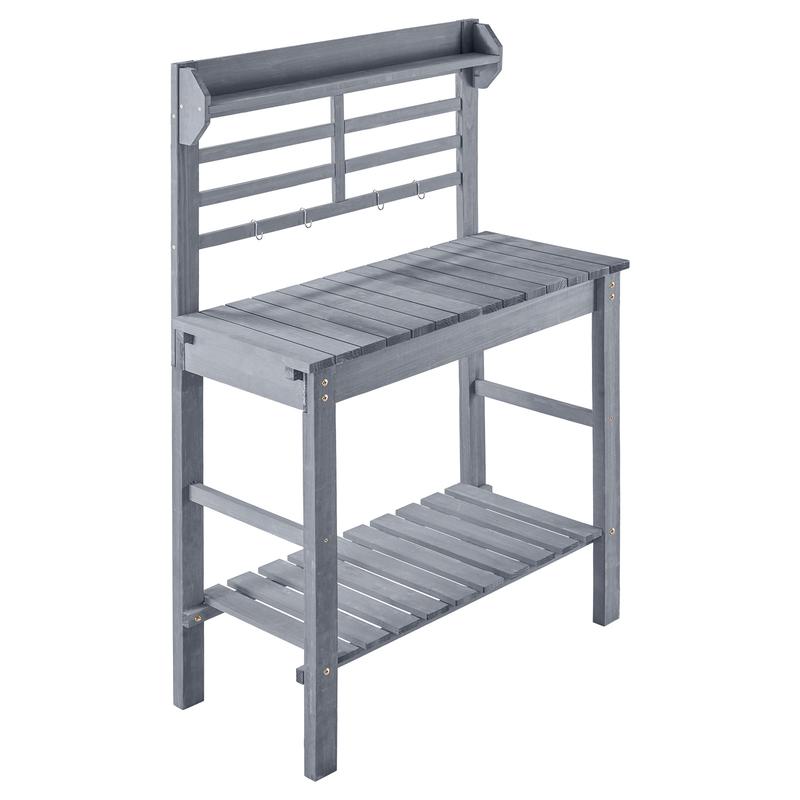 • Ample Storage Space: Our potting table features a top shelf, displaying small potted plants, while the cabinet and bottom shelf store larger tools, fertilizers, and more. Four hooks are included for hanging items like towels
