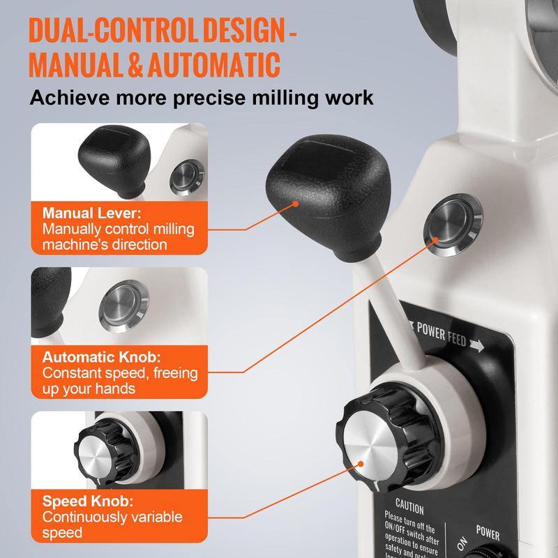 • Easy to Use, Manual or Automatic: Our power feed milling machine offers two different speed adjustment modes: manual and automatic. With manual control buttons, you can adjust the speed as needed. Alternatively, set the device to automatic constant speed mode for hands-free operation, making your milling tasks a breeze.