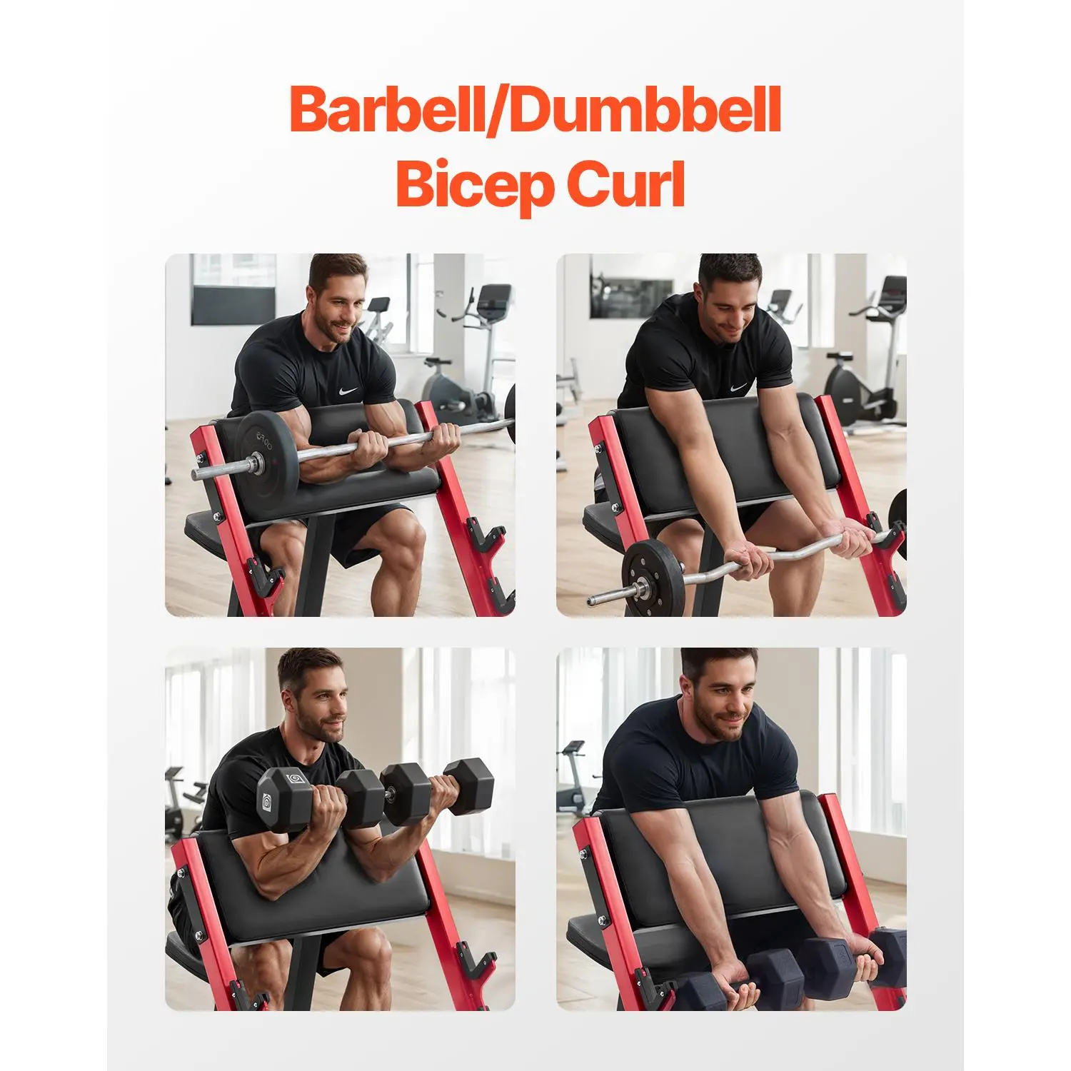 • Heavy-Duty Barbell Support: Designed with solid barbell holders and a robust weight capacity of 660 lbs (300 kg), this preacher curl bench is built for heavy lifting. Note: Barbell is not included