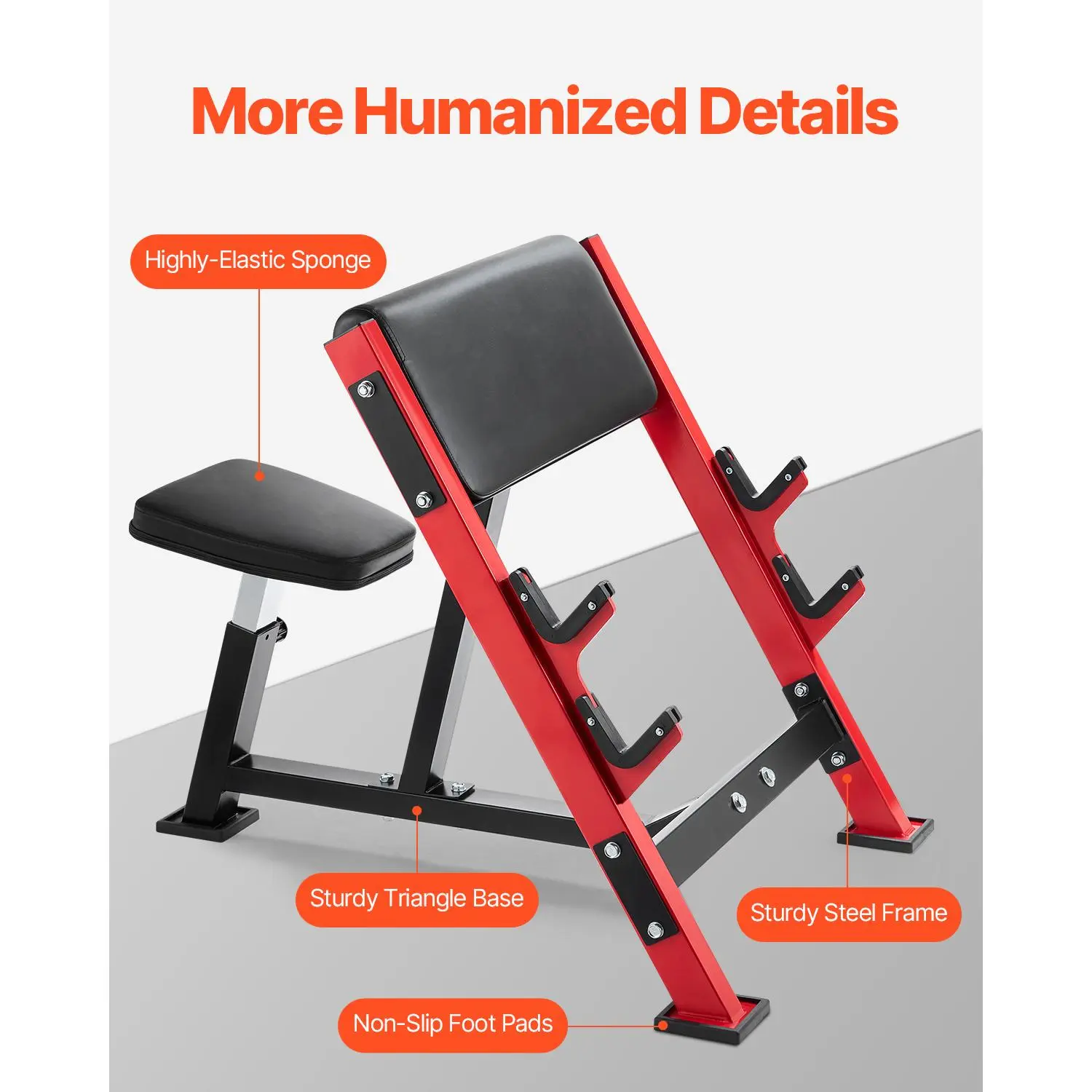 • More Humanized Details: Built with a sturdy steel frame and a sturdy triangle base, this bicep curl machine ensures exceptional stability and durability. Features like highly-elastic sponge padding and non-slip foot pads prioritize your comfort and safety during intense workouts