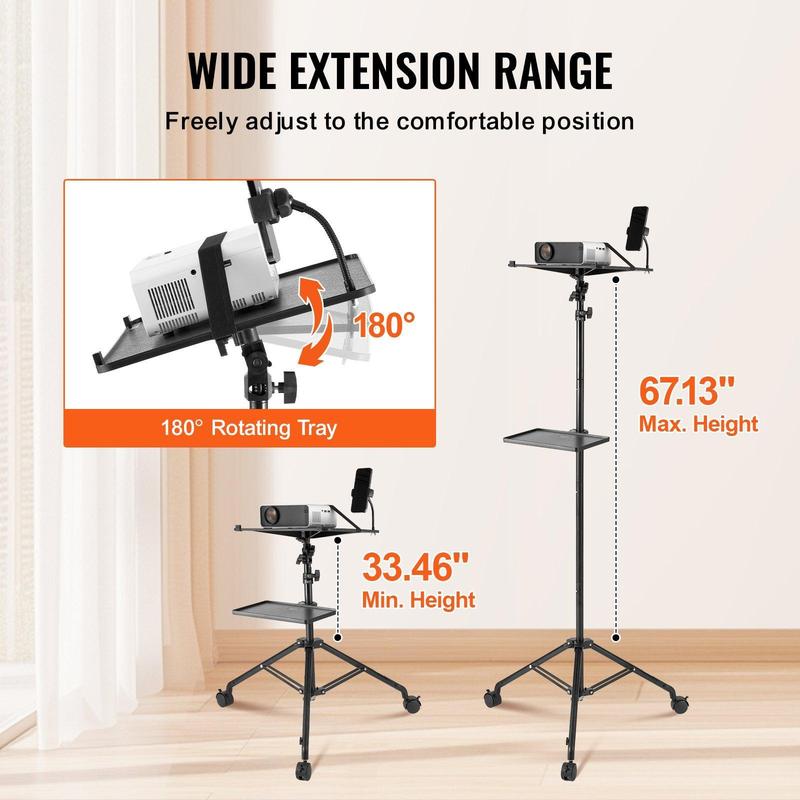 ·Versatile Stand: This projector stand tripod features an adjustable tray with a gooseneck phone holder, allowing you to combine your projector and laptop for any occasion!