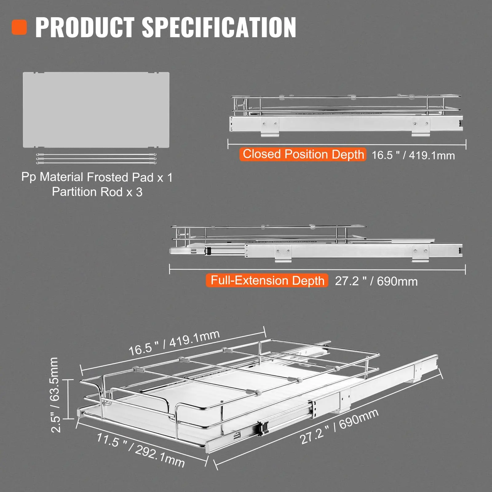 • Smooth and Quiet Sliding: Using an industrial-grade ball sliding system, even under the weight of heavy portable equipment (such as kitchen mixers, pots and pans, and other kitchen utensils), this wire basket slide shelf can slide smoothly without unpleasant noise.