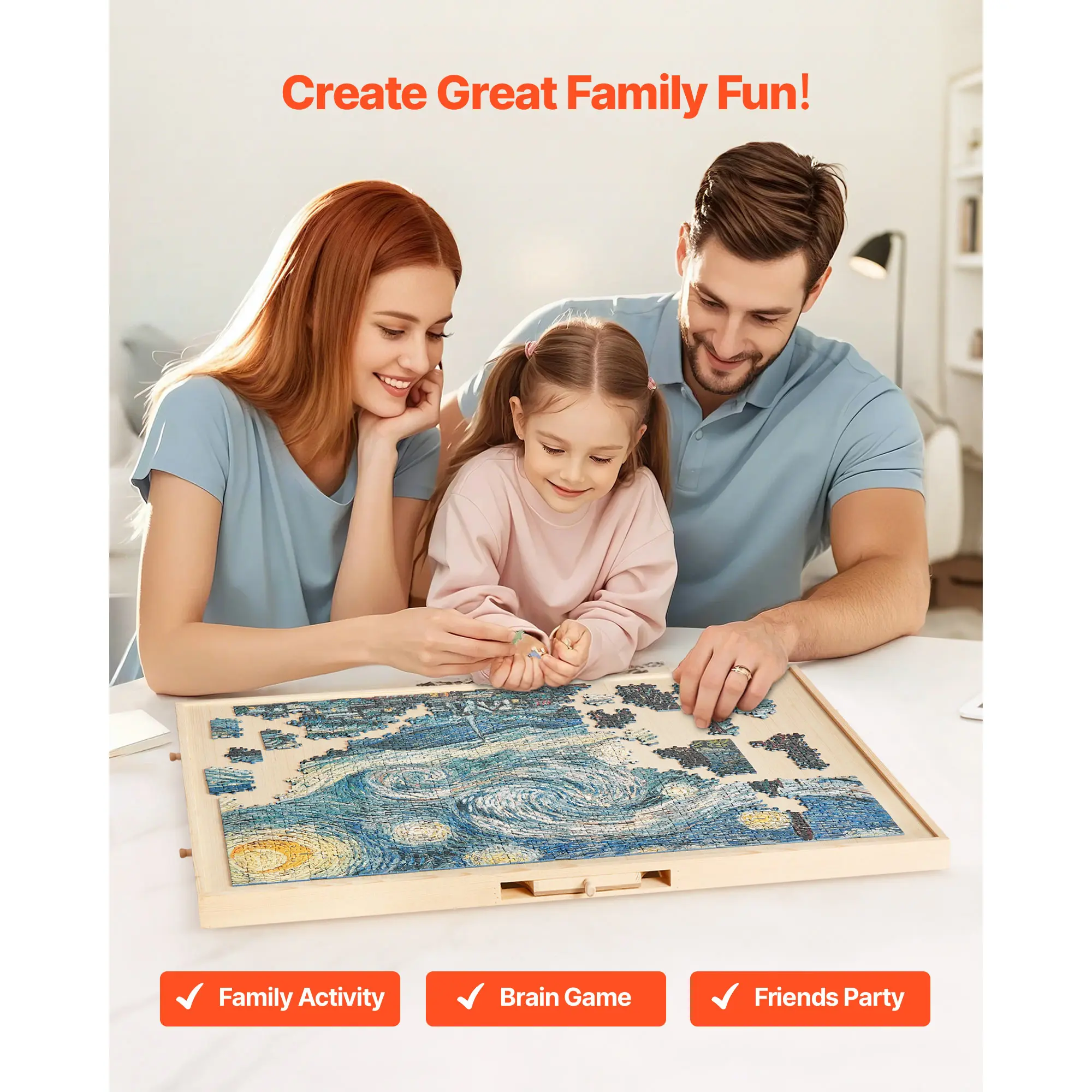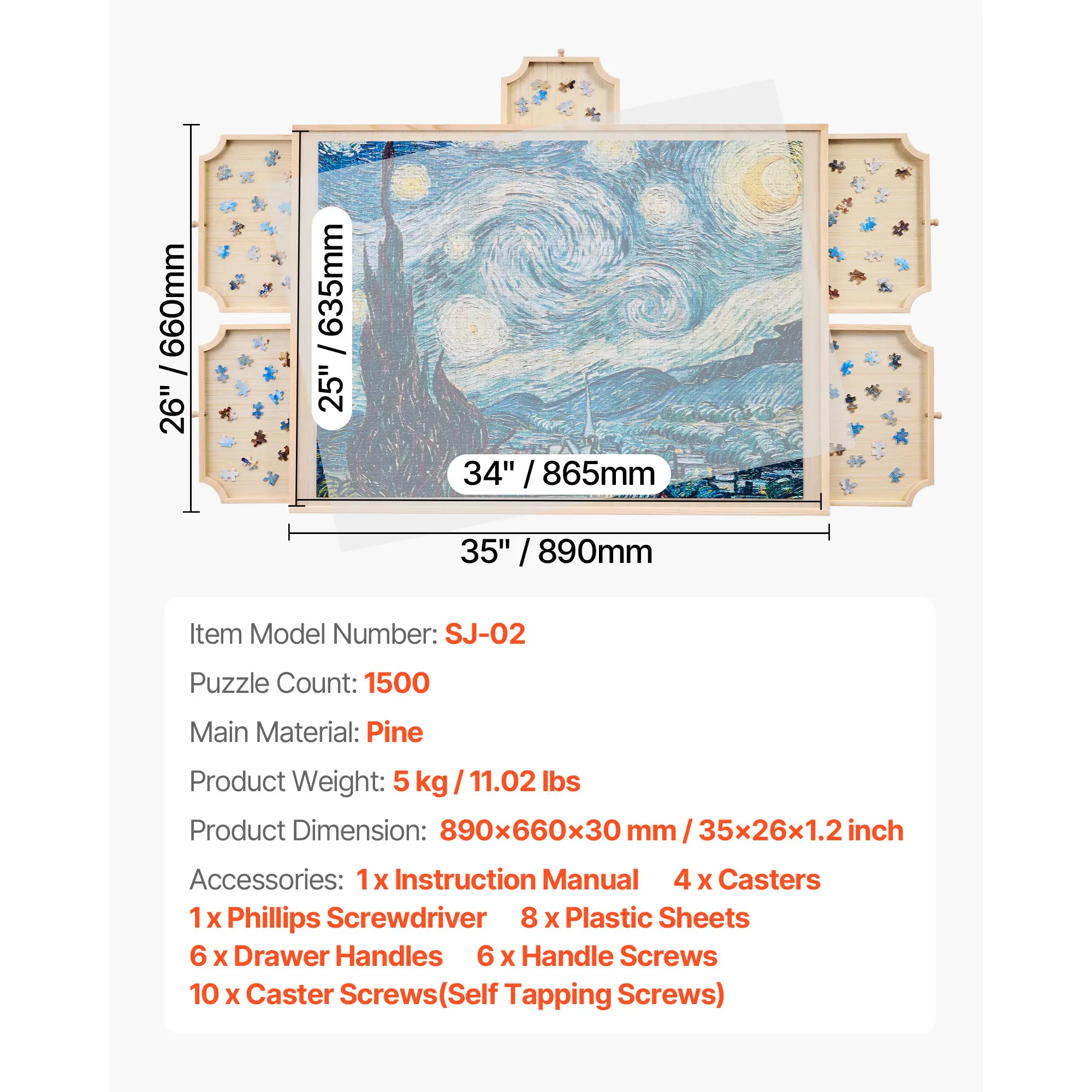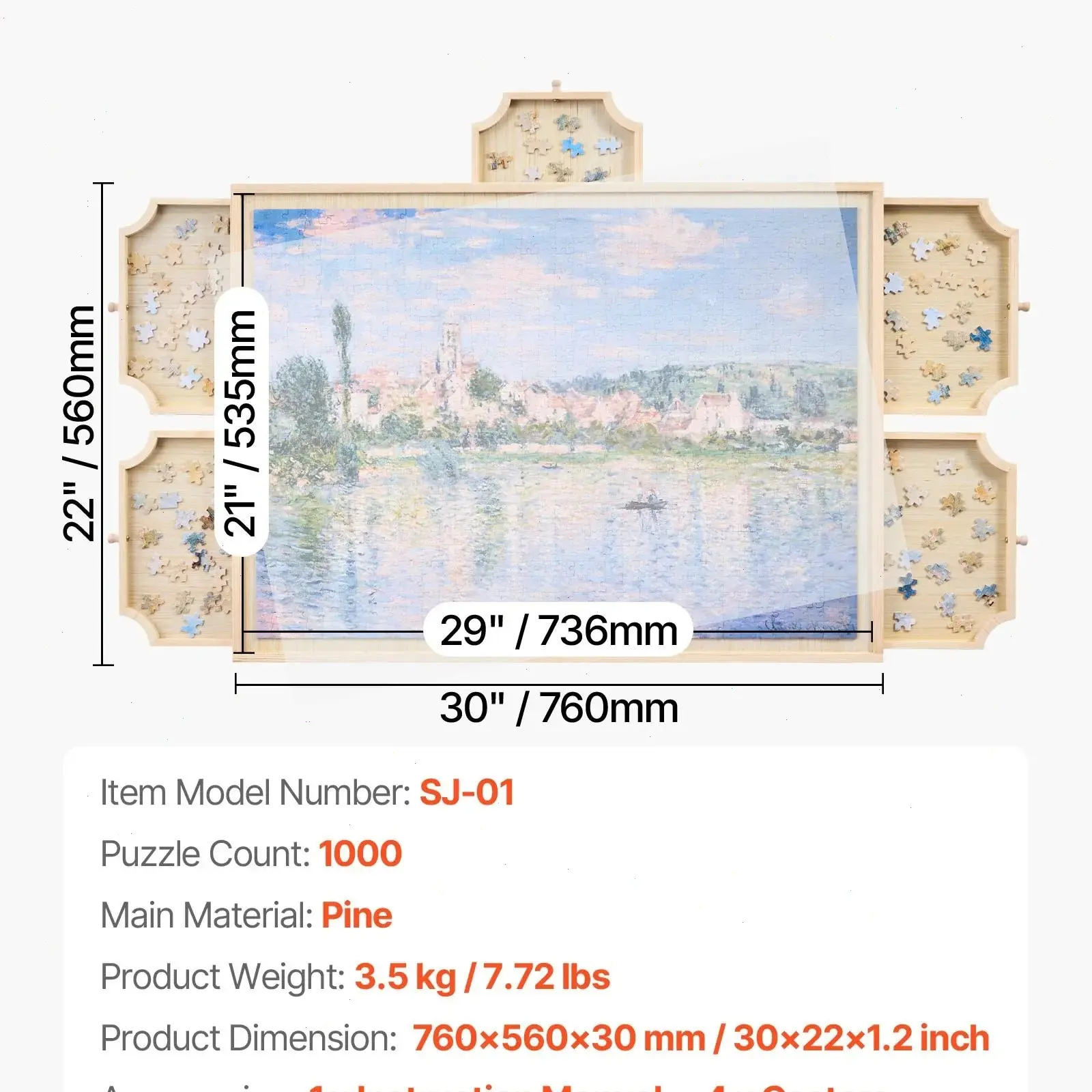Love it! Great product for jigsaw puzzle lovers! Would recommend. It is big enough for up to 1500 piece puzzles and has 5 drawers for the pieces. Got it yesterday and put a started puzzle on it.