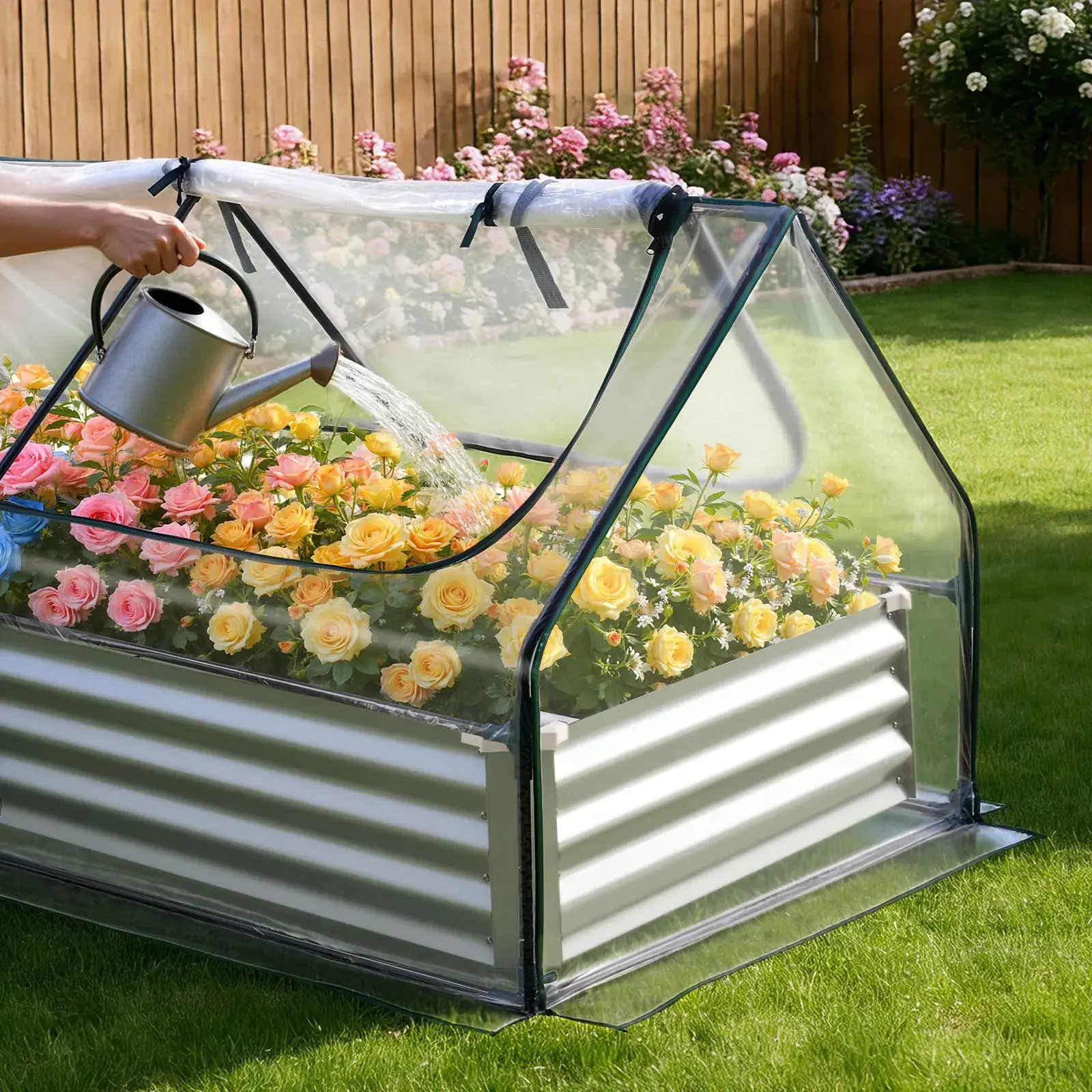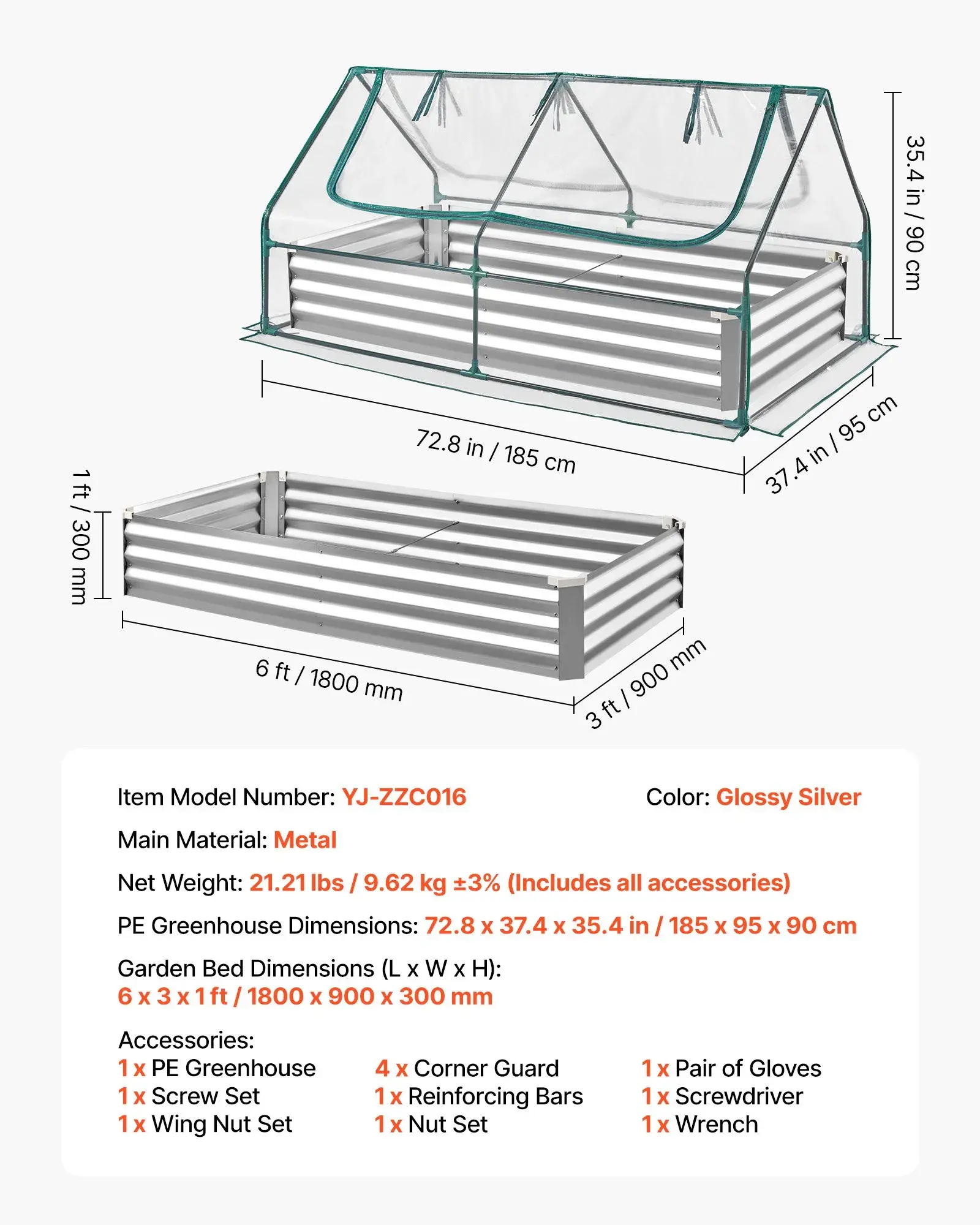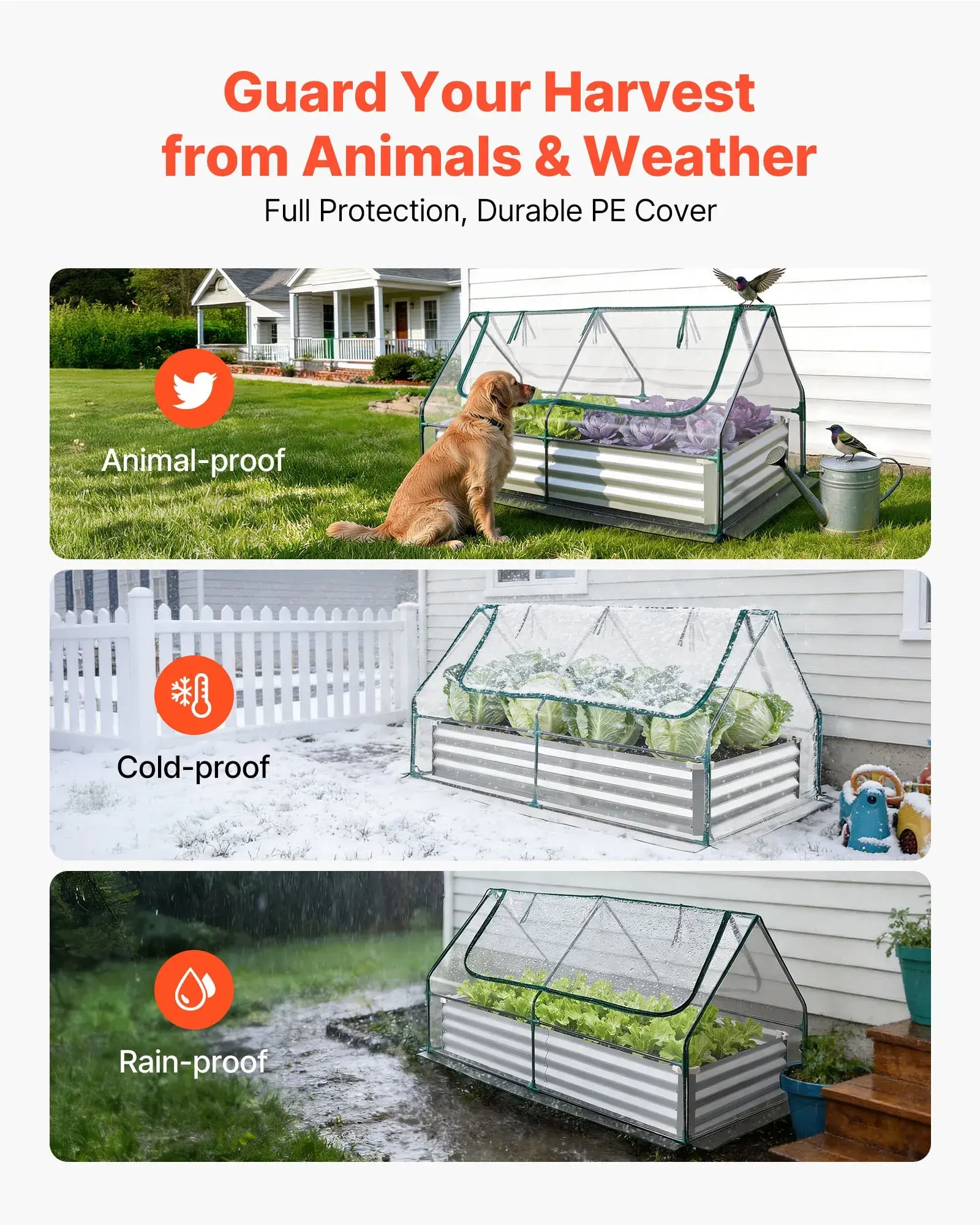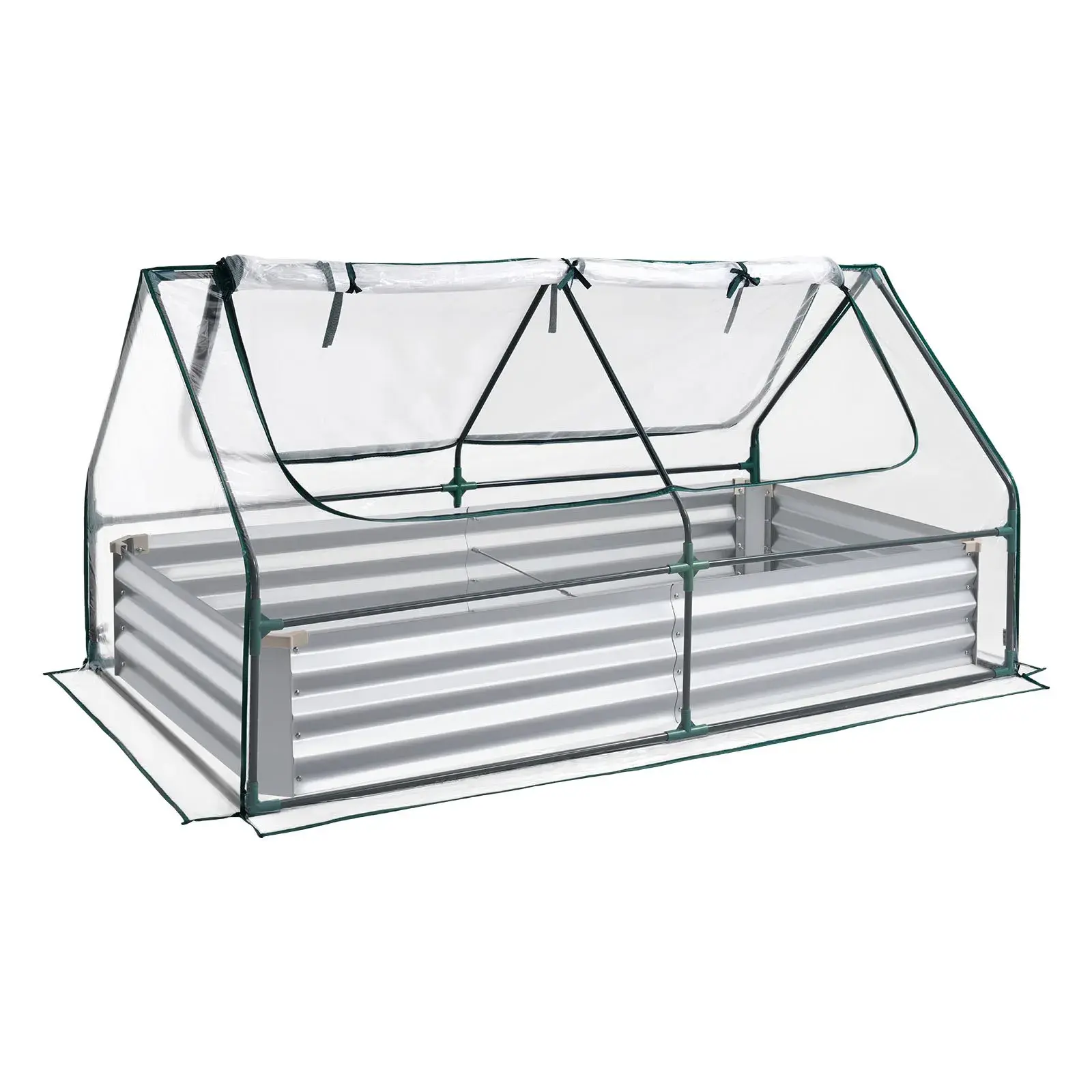 ·Bed System: Includes a raised garden bed, a standalone PE greenhouse cover, and a steel frame. Use separately or together for an open garden bed, a separate greenhouse, or a covered garden bed growing year-round