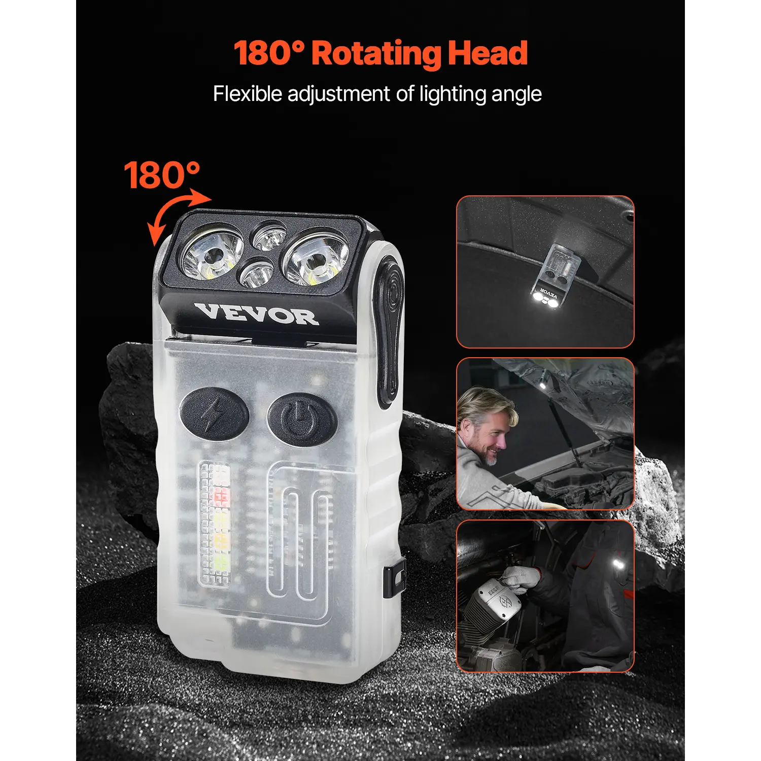 • 180° Rotating Head: Equipped with a 180° rotating head, this mini LED flashlight allows you to easily adjust the lighting angle. The magnetic tail enables secure attachment to metal surfaces, and the two-way clip allows for easy attachment to hat and backpack, providing convenient illumination for repairs and various tasks.
