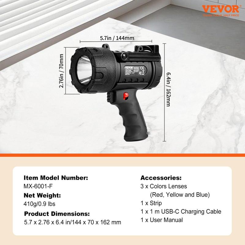 ·Fast 3-Hour Charging: Thanks to cutting-edge USB-C charging technology, you can fully recharge this handheld spotlight flashlight in just 3 hours! Compatible with any USB charging port, you can power it up at home or in your car—making it easier than ever to stay ready for action. Spend less time waiting and more time enjoying bright light for all your adventures!