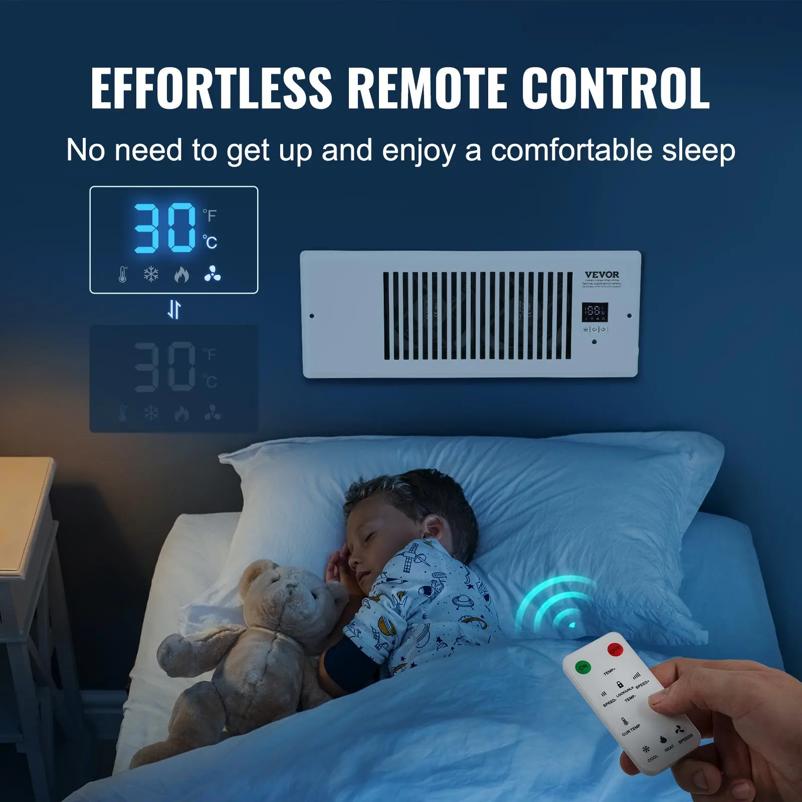 ·Remote Control: With the remote control in hand, you can control the air vent fan speed, switch modes from anywhere in the room. With an effective range of up to 26 ft, you can control the wall and floor vent fan effortlessly while lying in bed or on the couch.