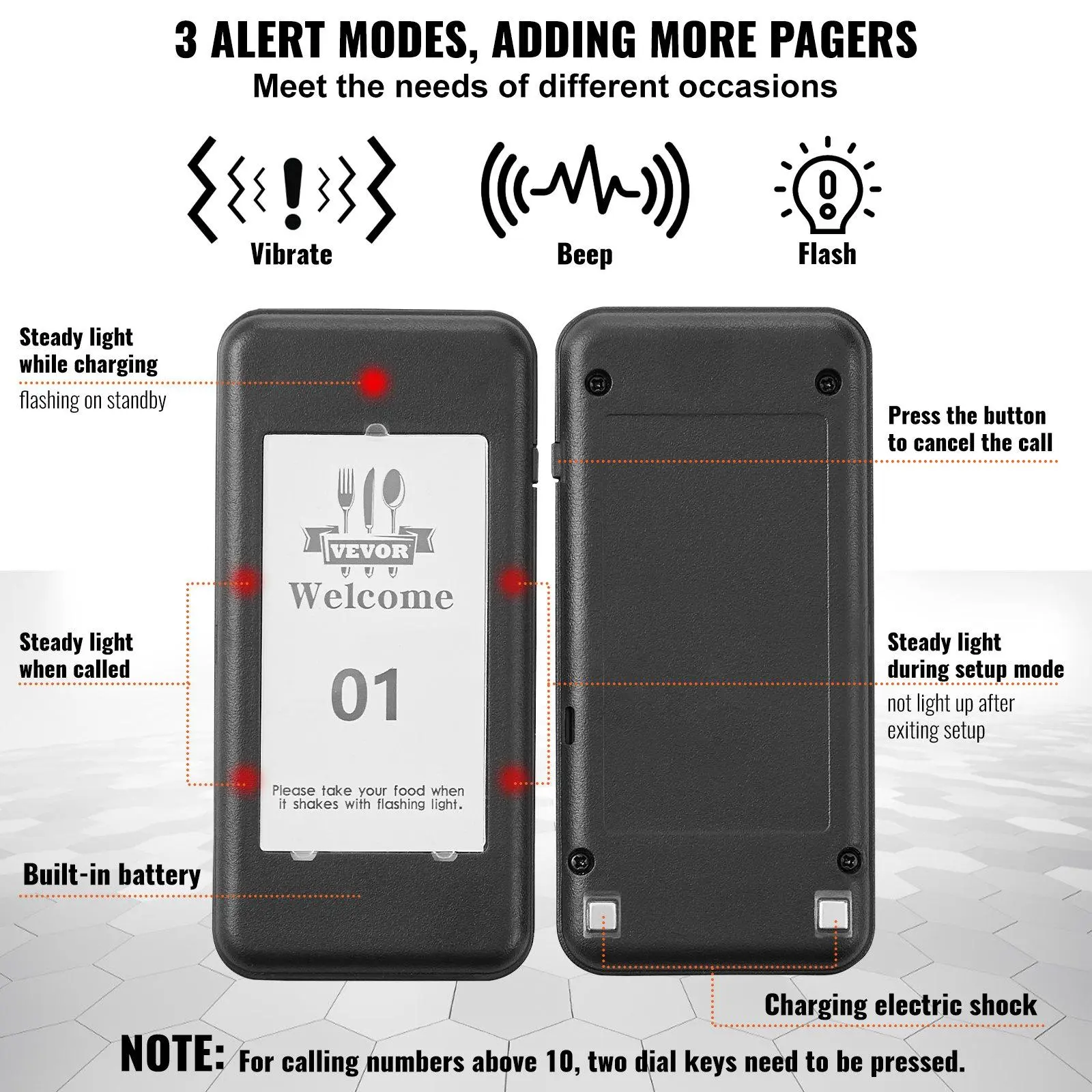 ·Outstanding Performance: The restaurant pager system consists of a 98-channel mechanical keyboard transmitter and 16 pagers. Customers don't need to queue, maintaining social distancing and improving efficiency.