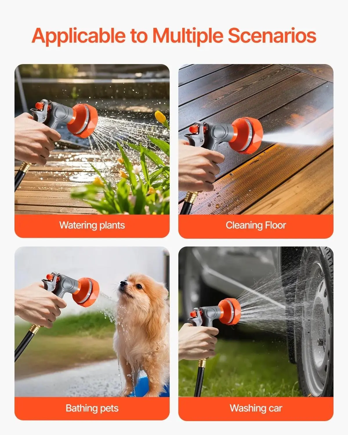 ·9 Patterns Nozzle: With 9 spray settings, this retractable garden hose reel meets various needs, whether it's watering plants, washing your car, bathing pets, or high-pressure cleaning your driveway.