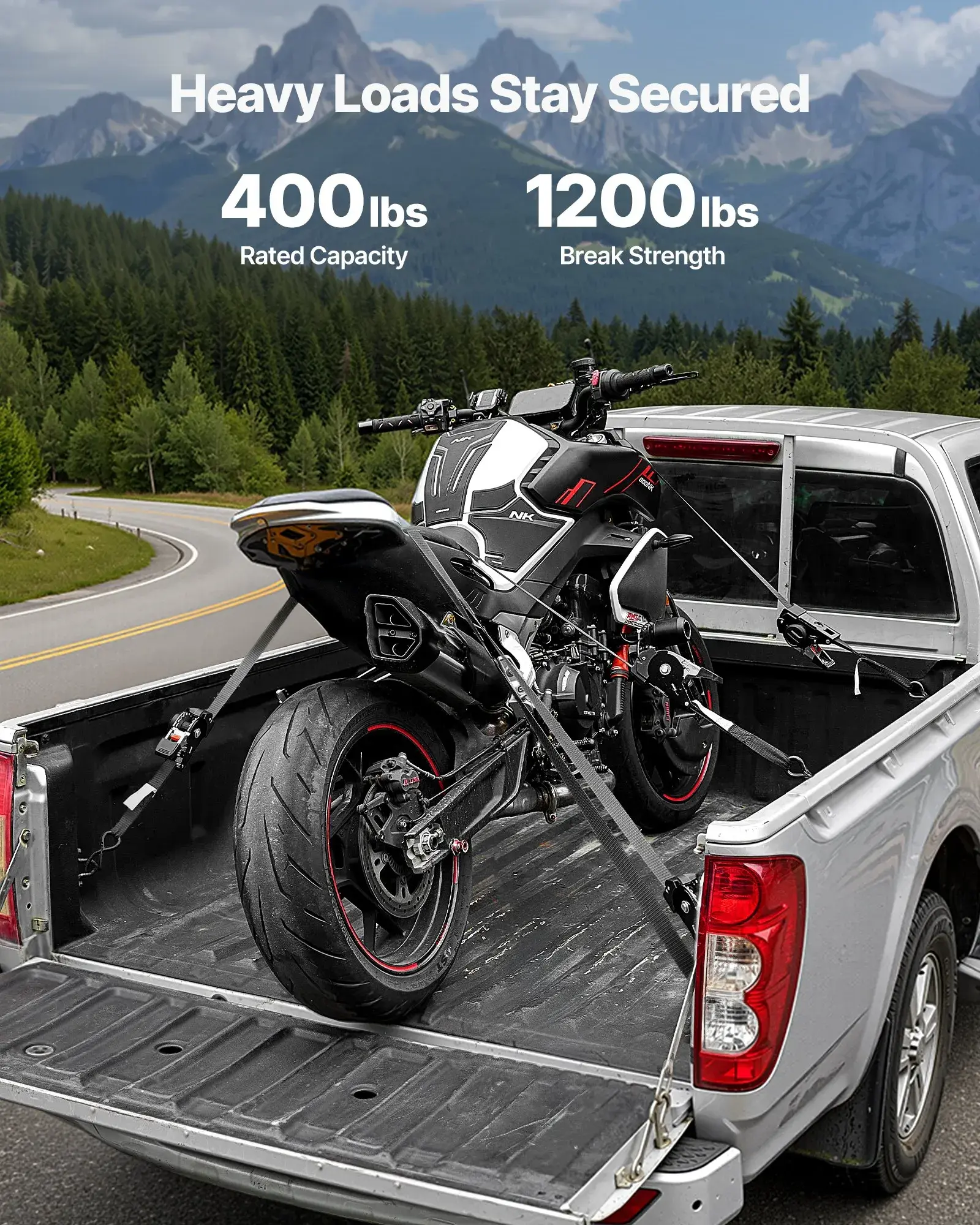 ·Rock-Solid Load Ratings: This ratchet strap delivers a 400 lbs working load and 1200 lbs break strength, so your gear stays put through stops and bumps. It's a tidy win for bikes, tools, and bulky boxes