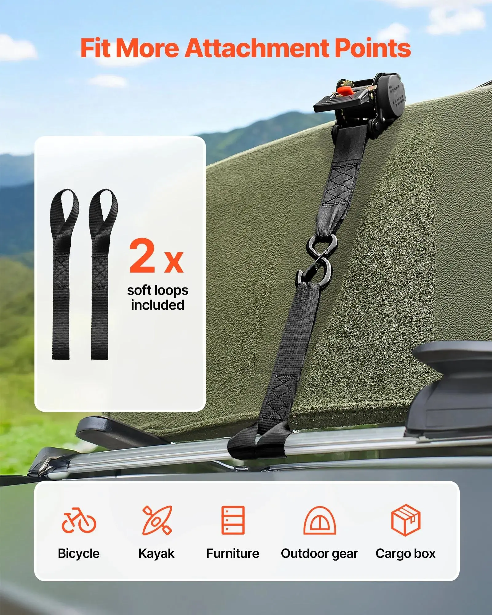 ·Soft Loops Included: You get 2 soft loops to create gentle anchor points on racks or rails. The loops secure finishes and expand tie-down options for furniture, kayaks, and more