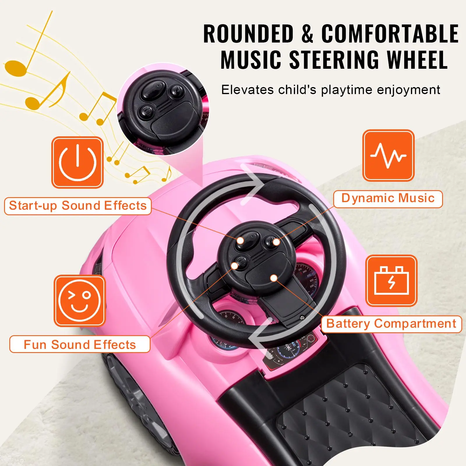 The toddler riding car's steering wheel has a music button that plays cheerful tunes, adding extra fun while your kid rides. The smooth, burr-free design ensures it won't scratch your kid's delicate skin.