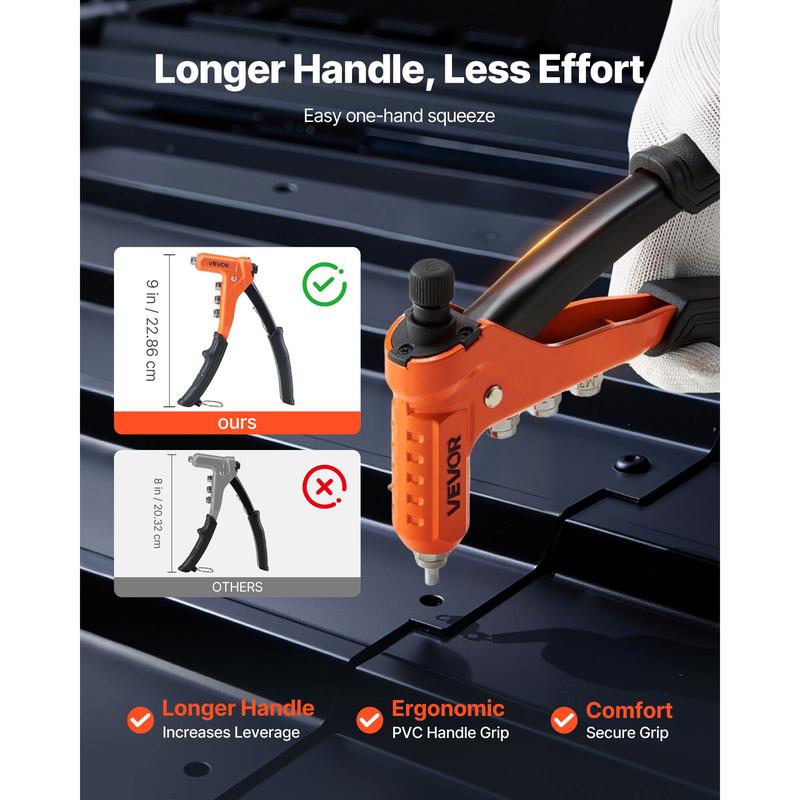 • Built Strong & Feels Right in Hand: Our rivnut tool kit is made of die-cast aluminum alloy and heat-treated steel parts for lasting strength. The ergonomic handle with thickened TPR grip fits your palm for better comfort, control, and reduced fatigue