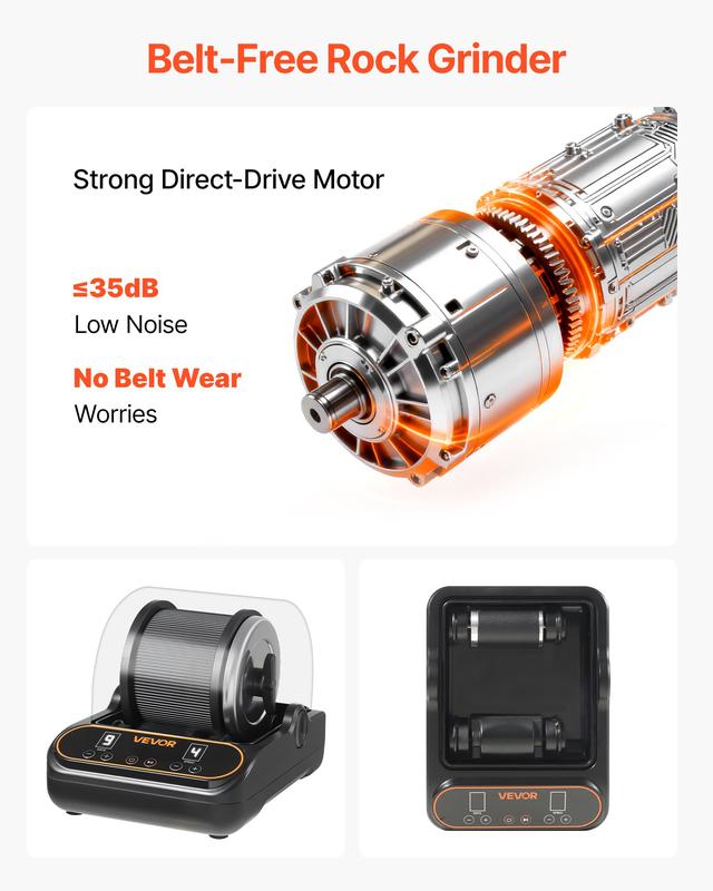 ·Stable Polishing: This stone tumbler machine employs a belt-free direct-drive motor for smooth, stable polishing. Low-voltage technology reduces belt-related maintenance, while ≤35dB operation ensures quiet, uninterrupted crafting from raw stones to polished gems