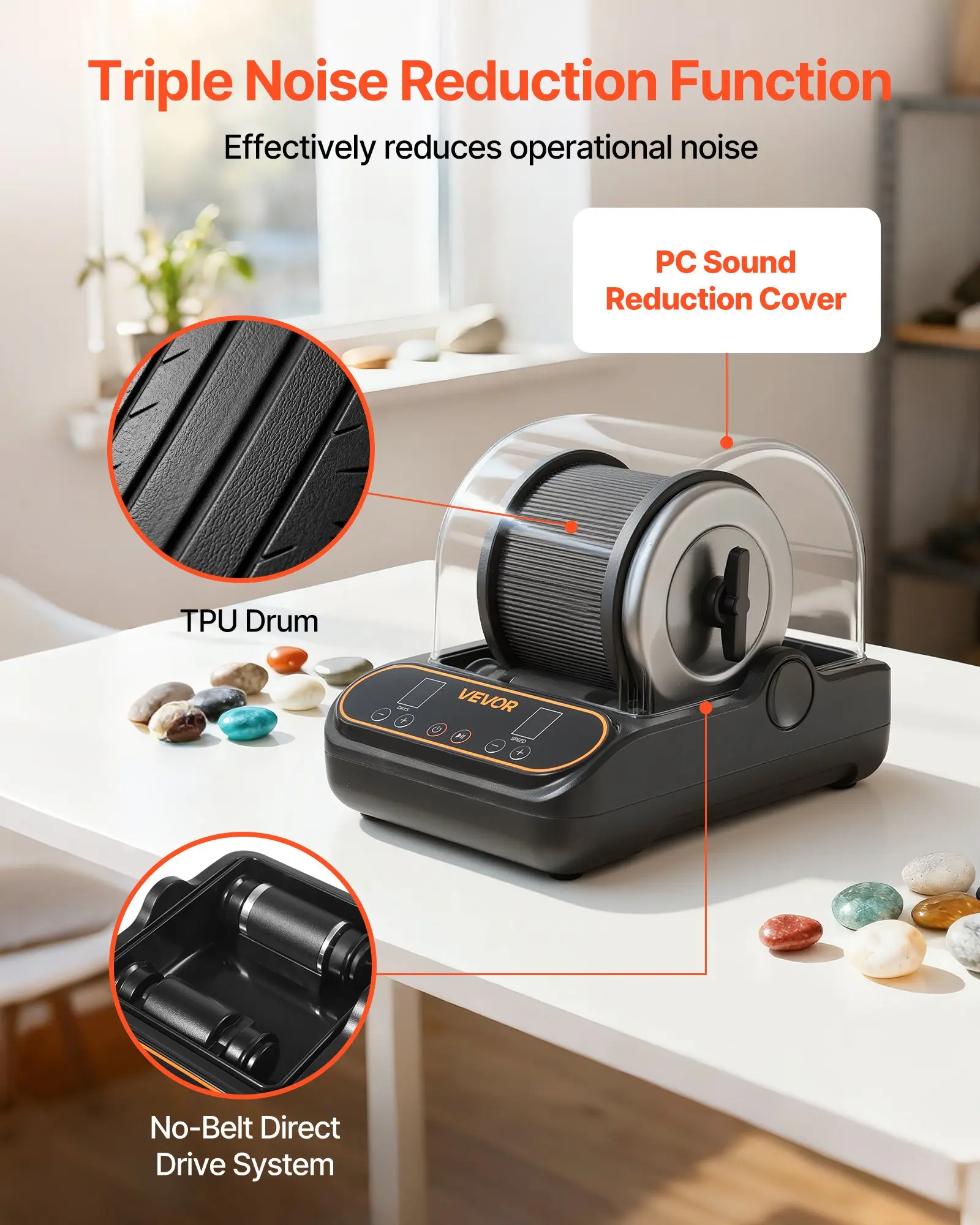 ·Smooth Tumbler: Equipped with a 1 lb/0.45 kg drum, this VEVOR stone polishing kit uses silent rubber and a sealed construction to ensure steady, low-noise operation. Liquid containment keeps the workspace tidy, while its reliable performance suits both home crafting and professional polishing tasks
