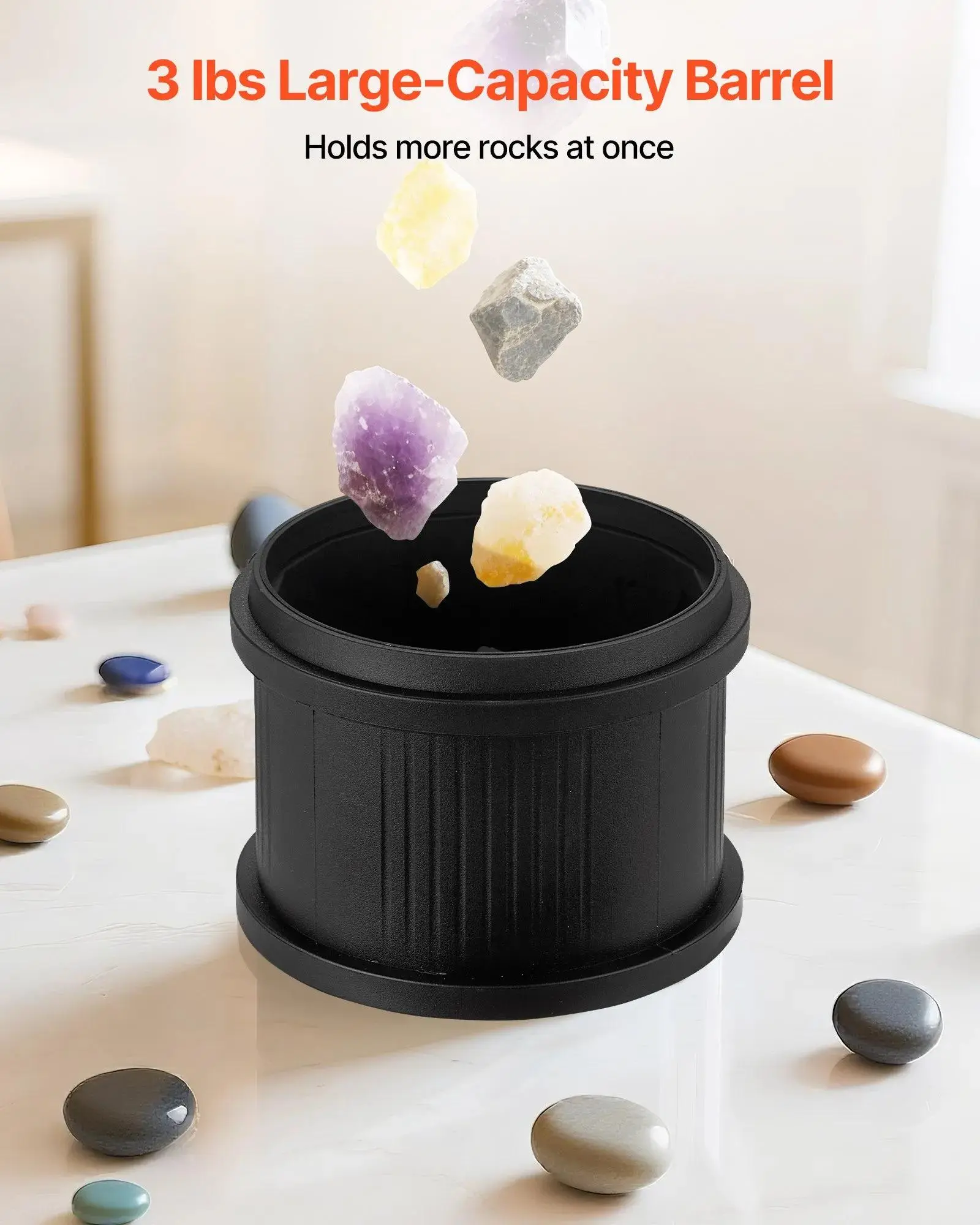 The rock polisher comes with a 3 lbs heavy-load barrel, holding more rocks at once. This improves polishing efficiency, saving time and ensuring even polishing. It reduces frequent refills for easier operation.